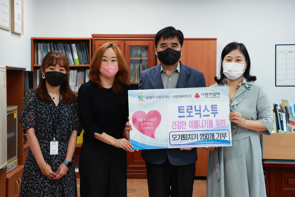 폭염/주거 취약계층의 경우 매 년 모기 등의 해충으로 인한 어려움이 발생하나, 호흡기질환 및 기타 건강취약가정의 경우 시중에 판매되는 해충약을 사용하는 데 많은 제약이 있었습니다. 센터에서는 올해도 스프레이식 모기약을 나눠드려야할지 많은 고민을 하던 차에 어두운 밤 반딧불이 같은 나눔 소식이 전해졌습니다. 모기 퇴치기 개발 업체인 트로닉스투(대표 김황묵)에서 『휴대용 모기 퇴치기 모그원』을 남양주시복지재단을 통해 후원해주셨습니다. 간편하게 휴대하며 모기를 퇴치할 수 잇는 아주 유용한 아이템으로 목걸이, 열쇠고리, 시계 형태로 되어 있어 얼핏 봐서는 모기 티치기로 보이지 않을 정도로 멋스러움이 묻어 있었습니다. 코로나로 인한 어려움속에서도 나눔을 통해 소외된 이웃들과 마을을 함께해주신 톨닉스투 김황묵 대표님께 감사를 드리며, 우리 이웃분들도 건강하게 여름을 잘 이겨내시길 바랍니다.