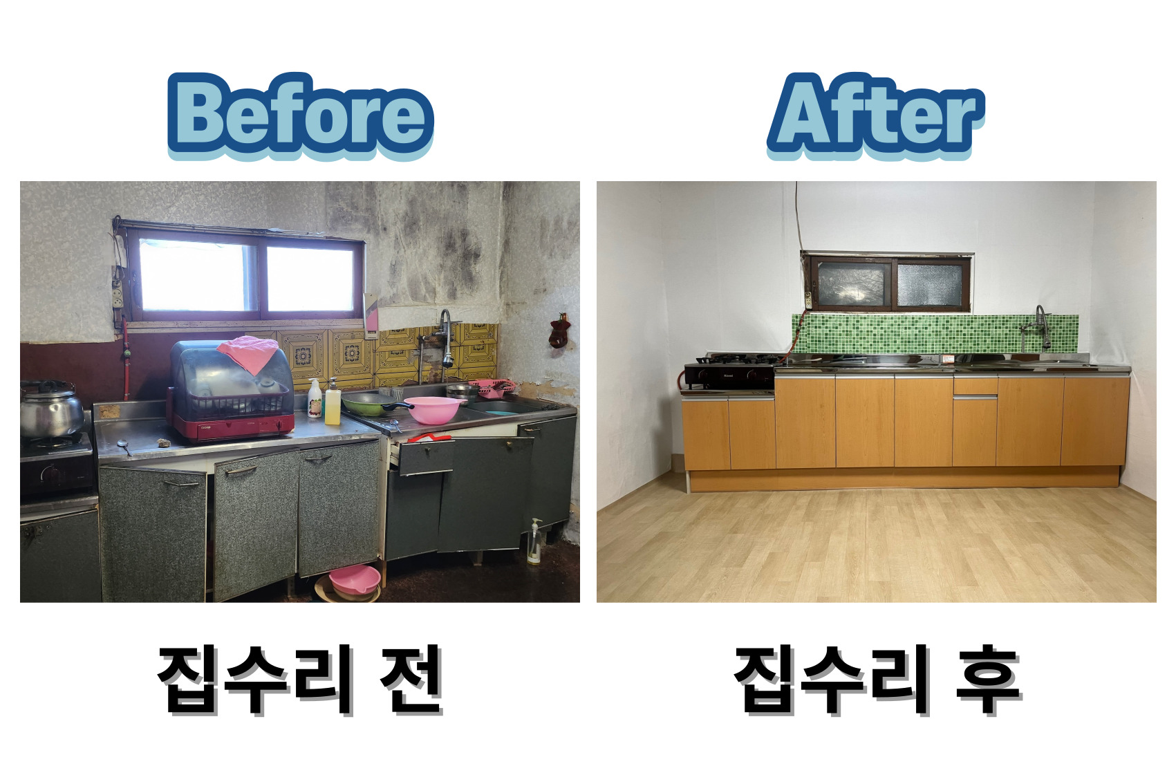 오랜 시간 거주하시다 보니, 싱크대가 노후되고 장판과 벽지도 상태가 좋지 않아 안전과 쾌적한 삶을 위해 집수리를 진행하였습니다.