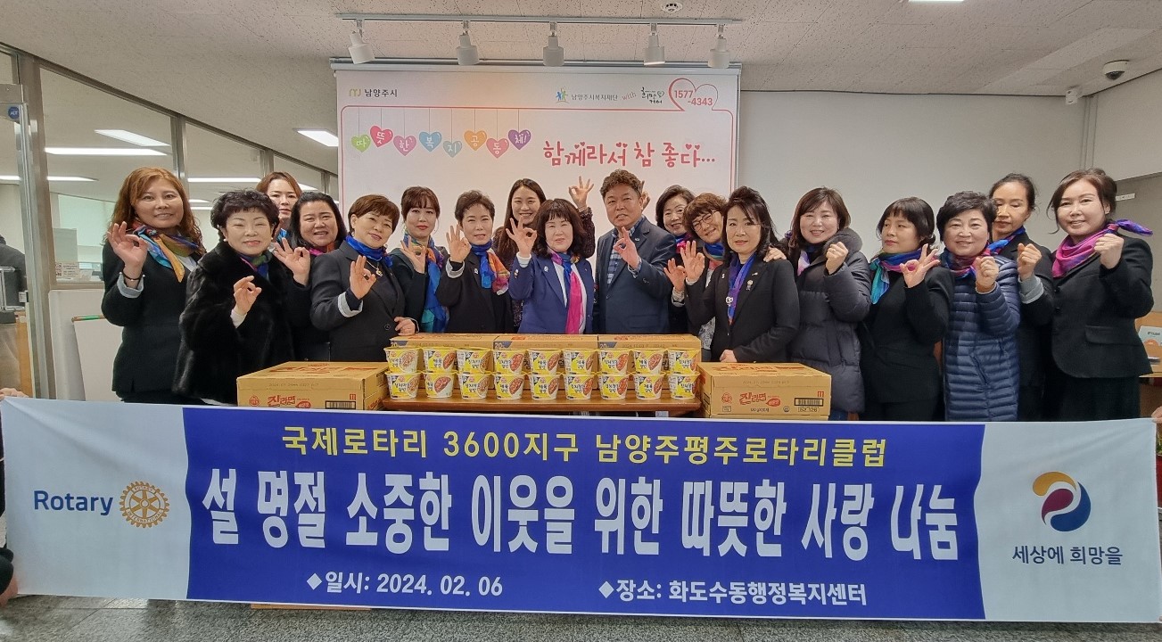 안녕하세요, 동부희망케어센터 입니다. 지난 6일은 '남양주평주로타리클럽'에서 설날을 맞이해 컵밥 100박스와 라면 100박스를 후원해주셨습니다. 평주로타리클럽 회원분들은 좋은기회에 후원할 수 있게 되어 뿌듯하다는 말씀을 전해주셨고, 화기애애한 분위기의 차담회가 진행되었습니다. 간편하고 든든하게 먹을 수 있는 컵밥과 라면은 지역주민분들의 식사에 많은 도움이 될 것 같습니다. 후원해주신 평주로타리클럽에 다시 한번 감사의 말씀 드립니다.
