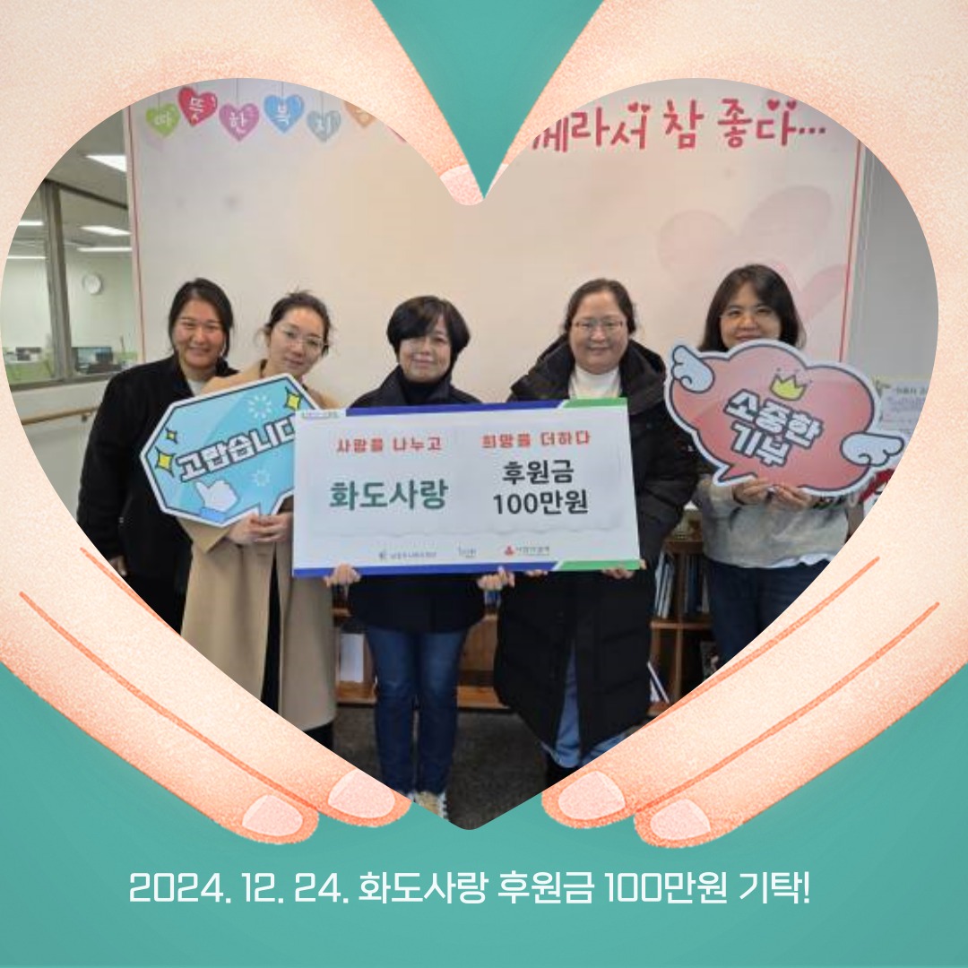 그 따뜻한 마음을 바로 전했어야 했는데, 한 달이 지나 이렇게 늦게 소식을 전하게 되었습니다. 하지만 나눔의 온정은 시간이 지나도 그 따뜻함은 여전하겠죠?