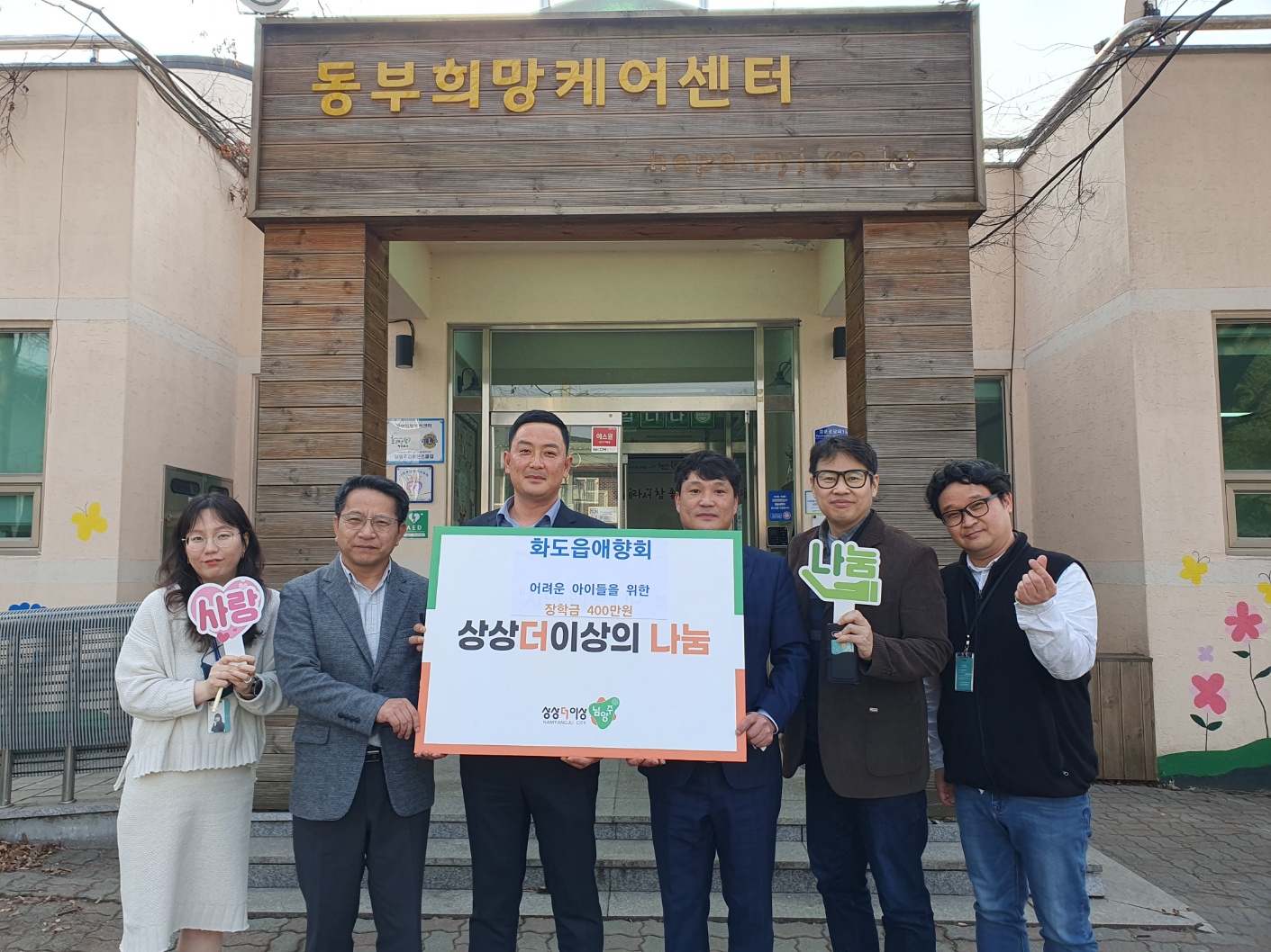 안녕하세요. 동부희망케어센터 입니다. 오늘은 교육 소외계층 아동.청소년을 위해 「화도애향회」가 나섰습니다. 공부를 잘하는 아이든 못하는 아이든 차별 없이 누구나 원하는 교육을 받을 수 있어야 한다며 교육 소외계층을 위한 장학금 400만원을 동부희망케어센터에 후원하셨습니다. 화도애양회 김명운 회장님께서는 “어려운 가정의 학생들에게 꿈과 희망을 전달하여 우리 사회의 올바른 인재로 성장할 수 있도록 앞으로도 계속 다양한 나눔 활동을 펼치겠다.”고 밝혀주셨습니다. 이번 장학금은 추석명절 ‘화도읍민 노래자랑 대회’를 통해 모금된 수익금으로, 코로나로 인해 3년 동안 진행하지 못했지만 매년 「화도애향회」가 추석에 마석시장에서 진행하는 행사라고 합니다. 또한 「화도애향회」는 지역사회 내 취약계층 초등학생을 위한 장학금 후원, ‘사랑의 좀도리’ 등 다양한 후원 활동을 펼치고 있습니다. 자라나는 아동.청소년들의 미래를 위해 노력해주시고 마음을 나눠주신 「화도애향회」께 감사드립니다.