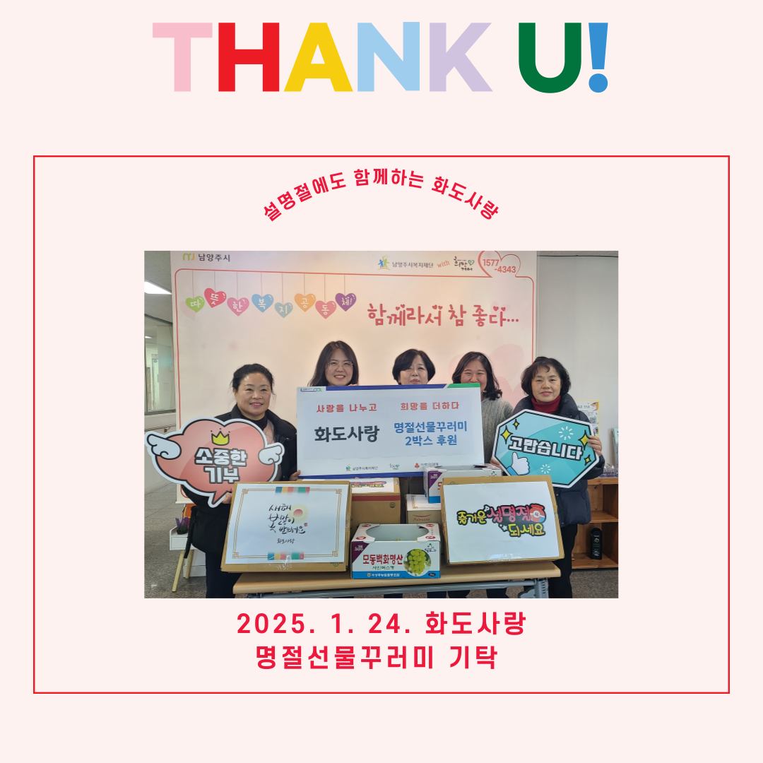 화도사랑카페의 따뜻한 손길 덕분에 누군가의 명절이 더 행복해졌습니다. 나눔이 곧 희망이라는 믿음으로, 저희 동부희망케어센터도 함께 걸어가겠습니다.