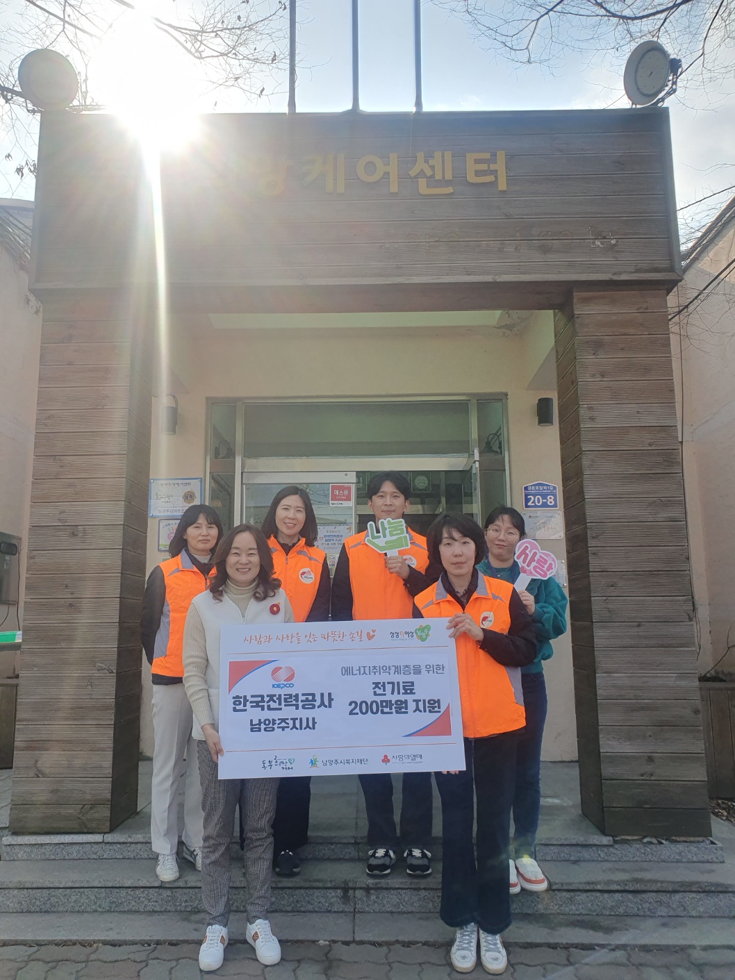그래서 지난 3일 「한국전력공사 남양주지사」에서 에너지 취약계층의 경제적인 어려움을 줄이고자 난방비 200만원을 지원해주셨습니다.