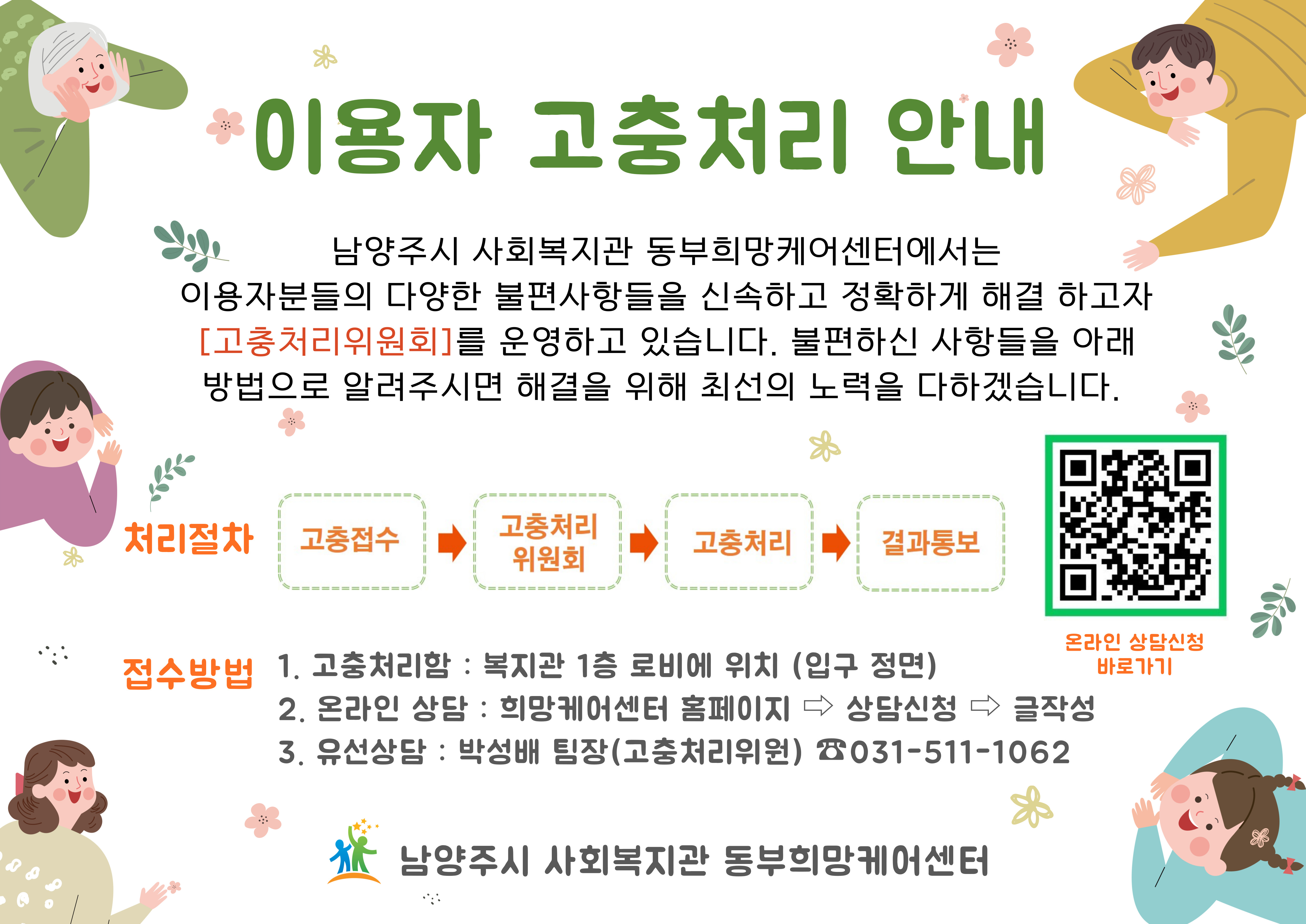 안녕하세요, 남양주시 사회복지관 동부희망케어센터 [고충처리위원회]입니다.