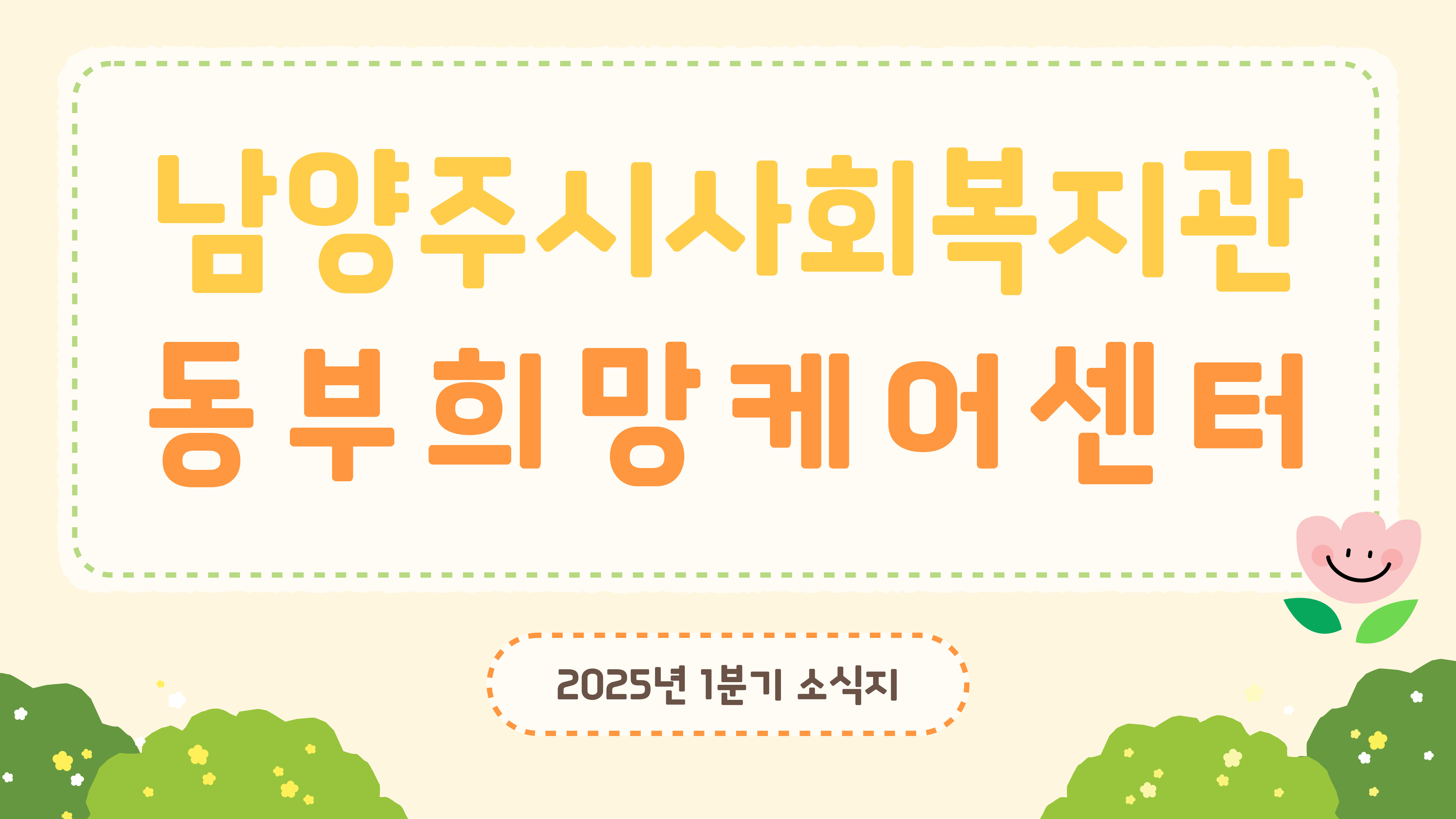 동부희망케어센터 동부희망케어센터 [2025년 1분기 소식지] 등록일자 2025-03-28 조회 171 내용 ▶동부희망케어센터의 1분기 소식지가 업데이트 되었습니다 !따뜻한 이야기와 소식을 지금 확인해보세요 : ) 첨부파일 001.jpg [ Size : 773.44KB, Down : 65 ] 미리보기 다운로드 홈페이지 게시용.jpg [ Size : 3.54MB, Down : 101 ] 미리보기 다운로드 목록보기