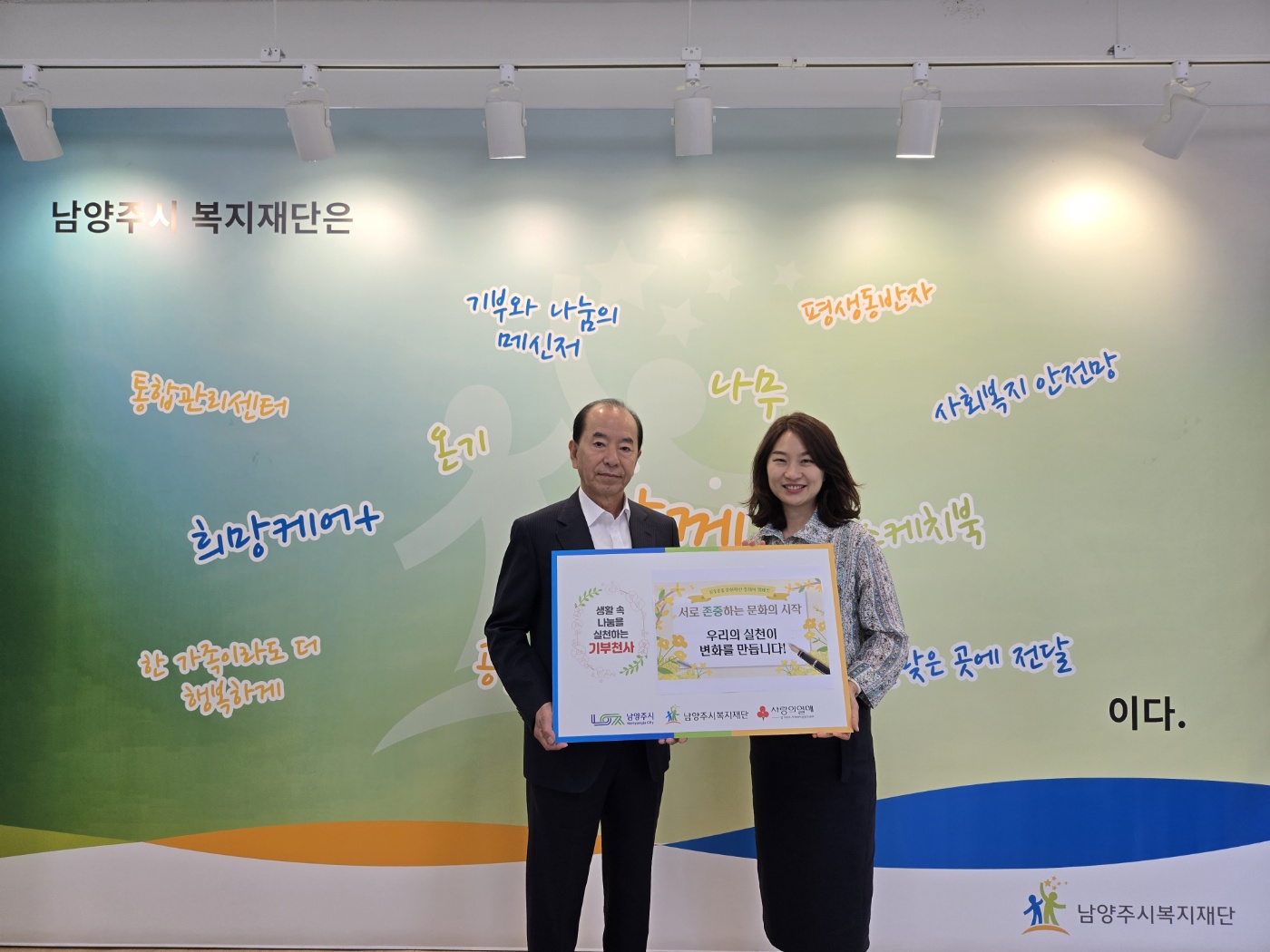 남양주시복지재단 원병일 대표이사님의 지목을 받아 상호존중문화확산릴레이 캠페인에 함께하게 되어 진심으로 뜻깊고 감사한 마음입니다.