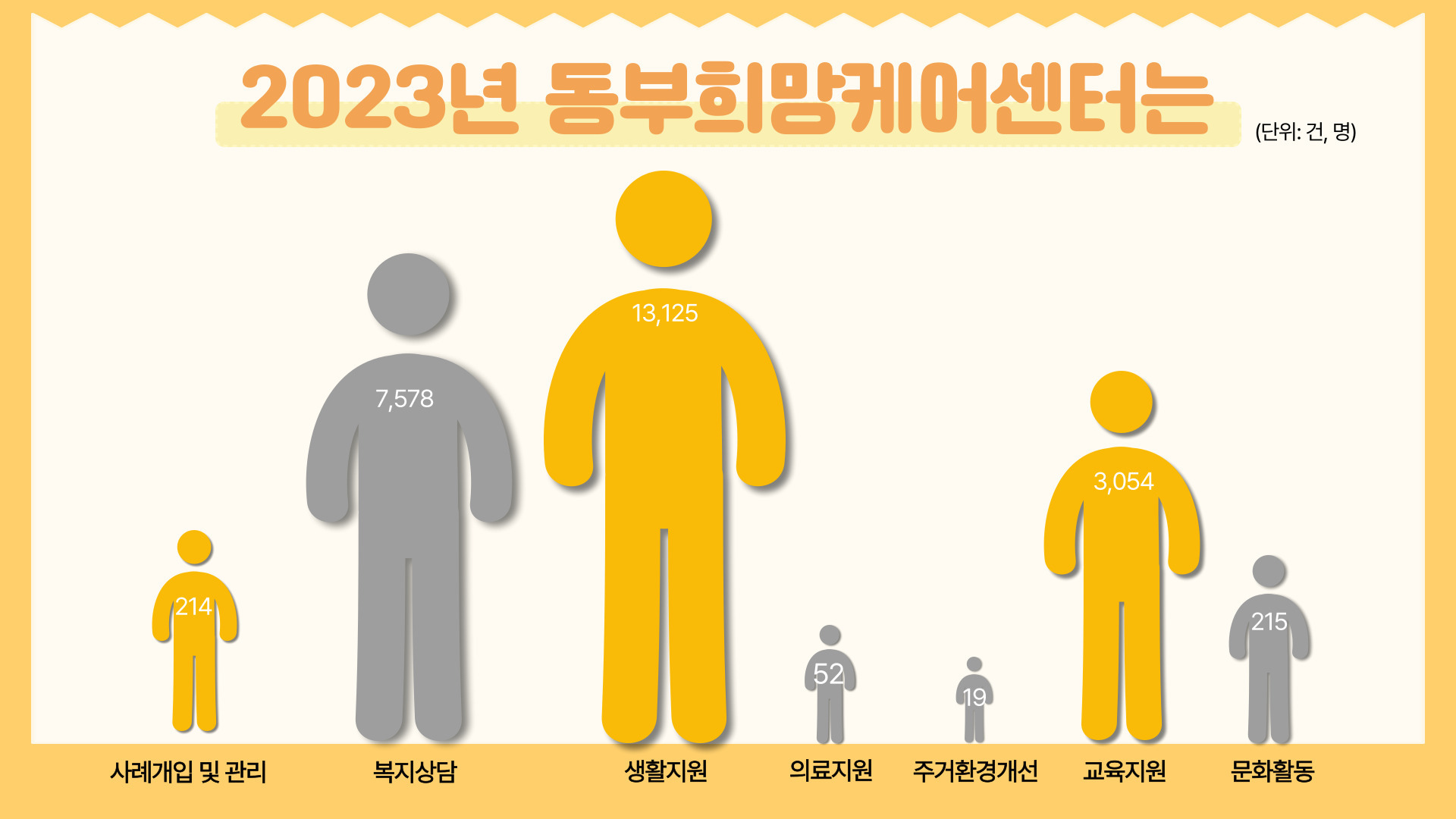 안녕하세요, 동부희망케어센터입니다 :) 벌써 1월의 후반부를 달려가고 있는데요, 행복한 1월 보내고 계신가요? 저희 동부희망케어센터는 조금 늦은 감이 있지만, 2023년의 4분기 센터 소식을 알려드리려 합니다. 한파가 계속되고 있는 오늘, 건강 유의하시고 2024년도 동부희망케어센터와 함께 해주세요~ 감사합니다.