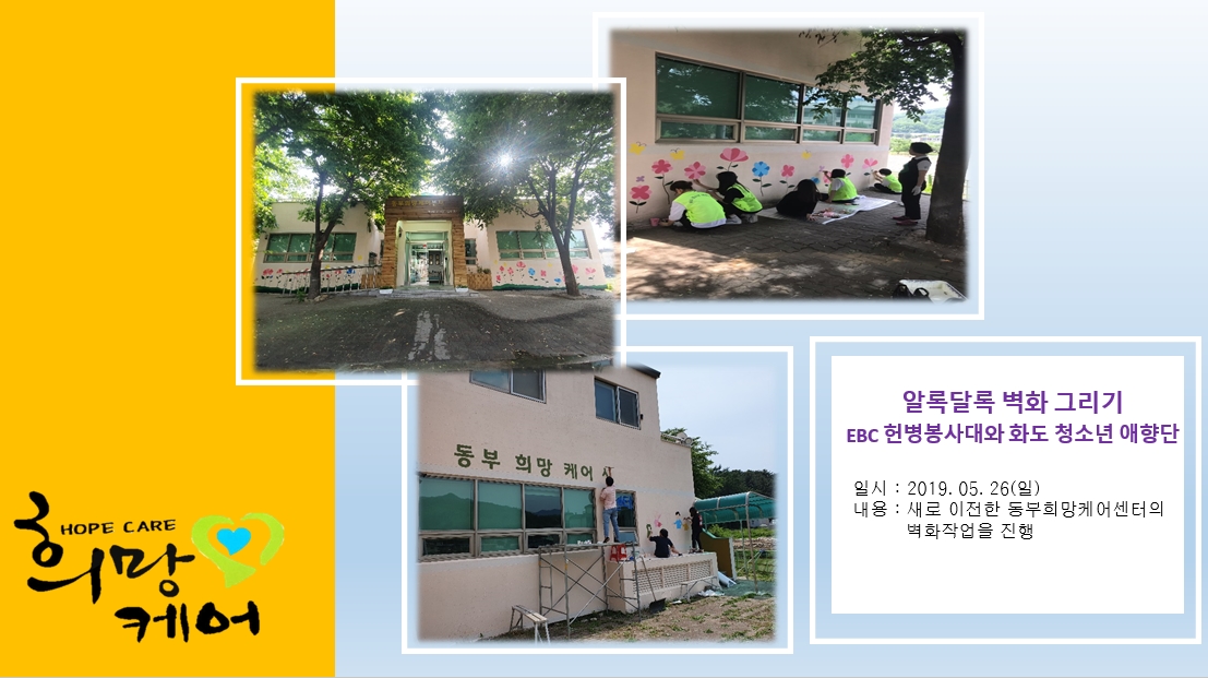 2019년 5월 동부희망케어센터는 지역사회와 함께 다양한 활동을 진행하였습니다. 지역사회의 따뜻한 관심과 사랑에 감사드립니다. 자세한 내용은 이미지를 참고해주세요.