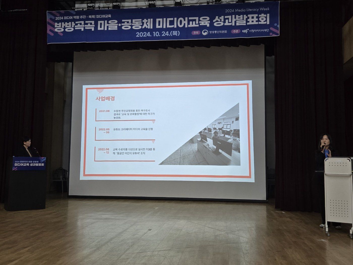 저희가 올해 시청자미디어재단의 우수사례로 선정되어 지난 24일, 성과발표회를 진행하였습니다.