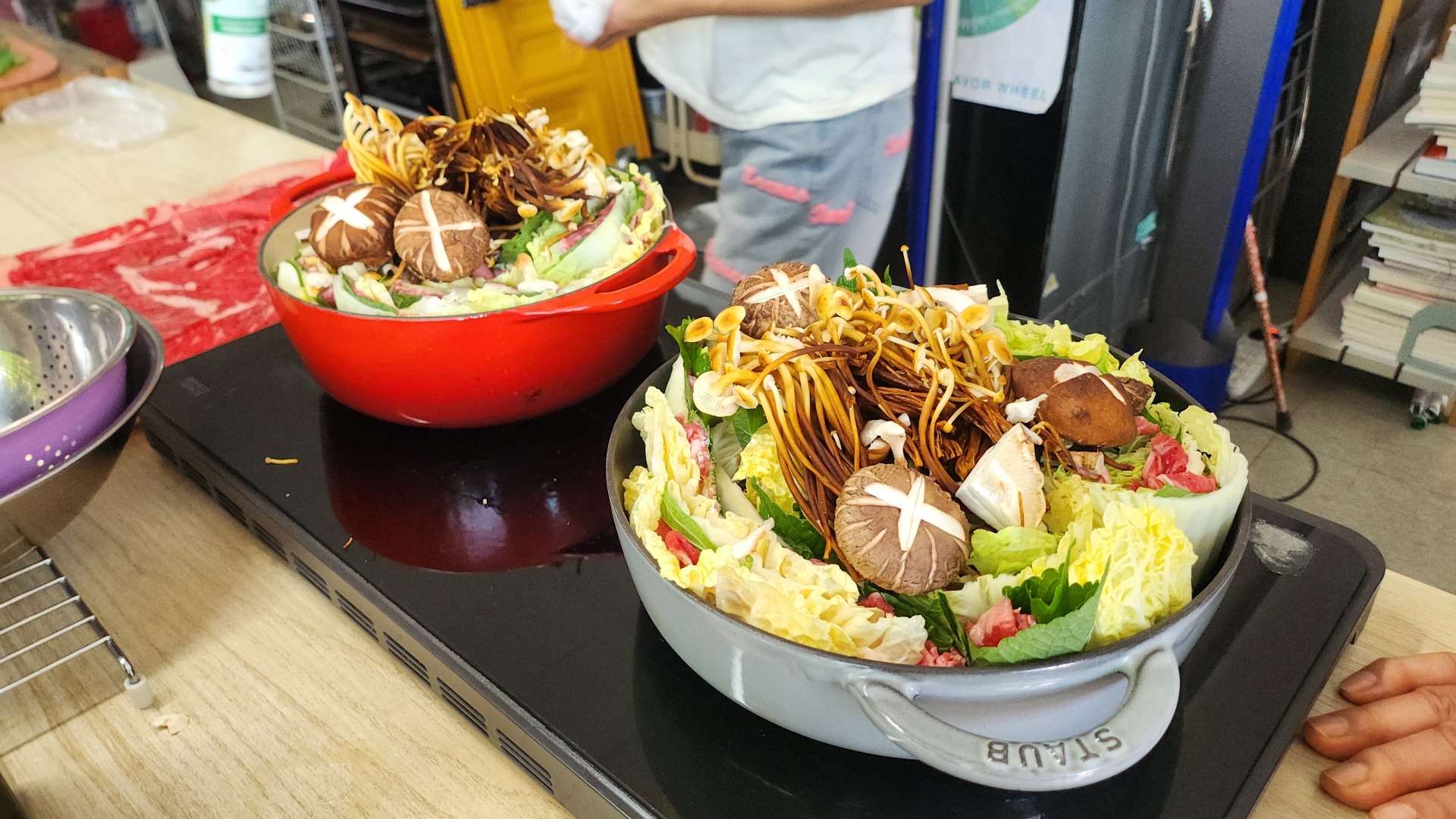 이번 요리는 밀푀유나베를 함께 만들어 보며 식사하는 시간이었는데요