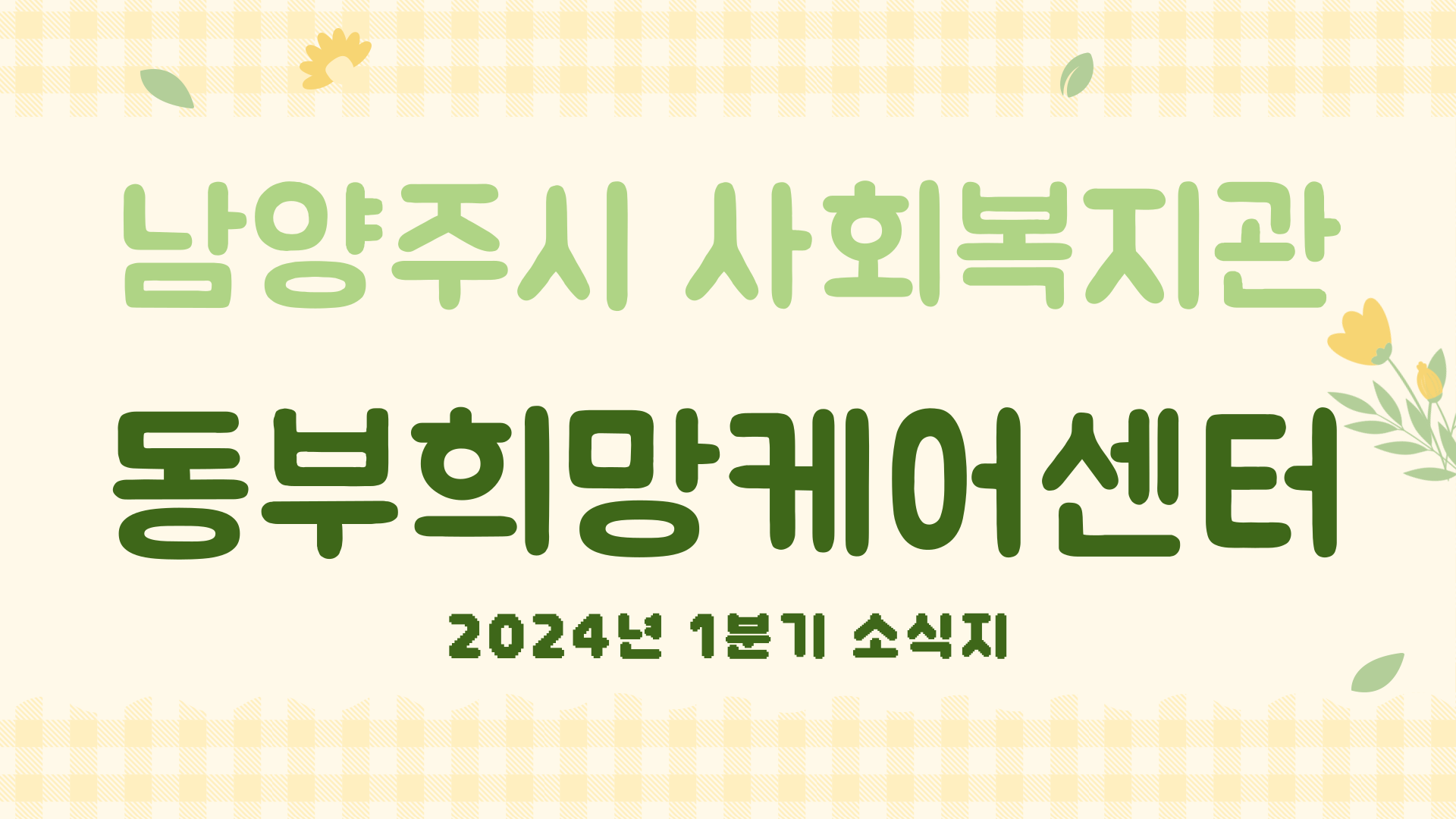 동부희망케어센터 동부희망케어센터/2024년 1분기 소식지 등록일자 2024-05-10 조회 185 내용 안녕하세요, 동부희망케어센터 입니다.봄꽃이 활짝 핀 오늘, 행복한 하루 보내고 계신가요?오늘 날씨처럼 활기찬 동부희망케어센터의 1분기 소식을 전해드립니다.앞으로도 많은 관심 부탁드려요 :) 첨부파일 0.png [ Size : 161.54KB, Down : 104 ] 미리보기 다운로드 1분기 소식지.png [ Size : 11.18MB, Down : 117 ] 미리보기 다운로드 목록보기