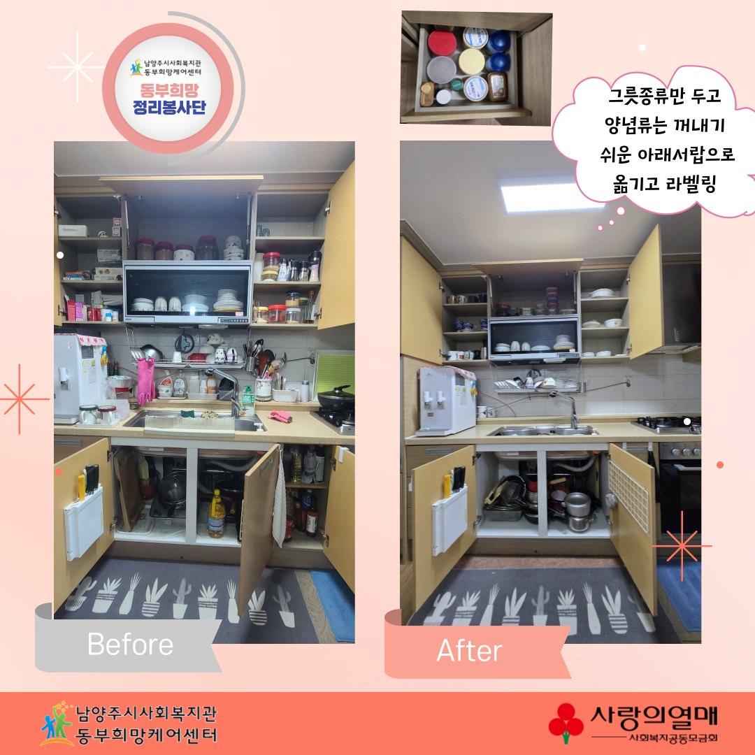 버려야 할 물건이 아깝다며 망설이셨지만, 정돈된 주방을 보시고 환하게 웃으시는 어르신의 미소에 저희도 마음이 뿌듯해졌어요!