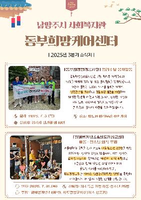 게시판 검색 구분 : 구분 전체보기 전체 동부희망케어센터 서부희망케어센터 남부희망케어센터 북부희망케어센터 검색 영역 : 전체 검색제목내용검색어 : 검색하기 동부희망케어센터 10/25(토) [제2회 아.이.돌 축제] 개최 안녕하세요, 동부희망케어센터 입니다.☆다음주 토요일인 10월 25일★저희 동부희망케어센터와 아동, 청소년 복지기관 및 단체와 함께 제2회 아.이.돌 축제를 개최합니다.지역의 아동, 청소년의 위기예방과 대응 사업비 마련을 위한 미니바자회부터 다양한 체험부스와 놀이가 진행된답니다~많은 관심과 참여 부탁드립니다♡☞ 일시: 2025. 10. 25.(토) 14:00 ~ 17:00☞ 장소: 마석 민속5일장(마석중앙로37번길 4) 2025-10-15 남부희망케어센터 [남부희망케어센터] 추석 연휴 휴관 안내 무더운 여름이 지나고, 신선한 바람이 불어오는 가을이 찾아왔습니다.민족 최대의 명절, 한가위 추석도 어느덧 성큼 다가왔습니다.복지관 이용에 참고하시도록 추석 연휴 휴관일정을 안내드립니다.연휴기간 동안 이용에 불편 없으시길 바라며,가족과 함께 풍성하고 따뜻한 한가위 보내시길 바랍니다.늘 건강과 행복이 함께 하시기를 기원합니다. 2025-09-22 북부희망케어센터 2025년 남양주시사회복지 북부희망케어센터 홍보영상!! 안녕하세요 여러분, 따끈따끈한 소식 전해드립니다! : >지난 상반기 촬영했던 홍보영상이 드디어 나왔습니다~!남양주시복지재단 대표 이사님의 인사말, 직원들의 인재상 소개, 사례관리 대상자의 일상 모습 등을 담은 홍보영상은 북부희망케어센터 유튜브에서 확인할 수 있으니 많은 관심과 사랑부탁드립니다.북부희망케어센터 유튜브 영상 보러가기!https://youtu.be/ZGXi-Lf-YJs?si=5GVQcxvEGoorYoh- 2025-07-07 남부희망케어센터 [남부희망케어센터] 2025년 46호 복지관 소식지가 발간되었습니다! 안녕하세요!남양주시 사회복지관 남부희망케어센터입니다. 화사한 꽃향기 가득했던 봄, 그리고 초록빛이 짙어지는 여름의 문턱에서남부희망케어센터의 따뜻한 이야기를 전해드립니다. 2025년 46호 뉴스레터가 발간되었습니다. 이번호에는 4월부터 6월까지 지역주민, 이용자, 후원자 여러분과 함께한따뜻하고 생기 가득한 현장의 이야기들이 담겨 있습니다. 활동 현장 속 웃음, 나눔, 감동의 순간들을 함께 느껴보세요.뉴스레터는 아래 링크를 통해 홈페이지와 페이스북에서 확인하실 수 있습니다.늘 함께해주시는 모든 분들게 진심으로 감사드립니다.이번 뉴스레터도 따뜻한 마음으로 읽어주시길 바랍니다., "dis": false, "ds": { "ti": "", "la": "ko", "cr": "", "su": "", "de":... 2025-07-04 동부희망케어센터 남양주시 사회복지관 동부희망케어센터 [이용자 고충처리 접수 안내] 안녕하세요, 남양주시 사회복지관 동부희망케어센터 [고충처리위원회]입니다. 우리 복지관에서는 복지관을 이용하시는 중 발생하는 이용자분들의 다양한 불편사항들을 청취하고 보다 신속하게 해결하고자 고충처리 위원회를 운영하고 있으며 이용자분들의 작은 소리에도 귀 기울이고 불편사항 해결에 최선을 다하겠습니다. ■ 진행절차 상담신청 ⇨ 접수 ⇨ 회의(고충처리위원회) ⇨ 조치 ⇨ 결과통보 고충 내용은 고충처리위원회 외 열람이 제한되며 신청자가 공개를 원하지 않을 경우 진행 과정은 모두 비공개로 처리됩니다. 그 외에는 접수, 조치사항, 조치결과를 7일 이내에 신청자에게 개별 연락하고 홈페이지에도 게시합니다. ■ 참여방법 1. 이용자 고충처리함(소리함) 가. 위치 : 복지관 1층 ... 2025-06-26 동부희망케어센터 2024년 ESG 복지경영 2024년 남양주시 사회복지관 동부희망케어센터는 ESG 복지경영을 실천합니다. 2024-06-25 남부희망케어센터 남부희망케어센터 시설 대관 안내 *대 상 : 지역주민 누구나*대관시간 : 평일 10:00~17:00 (주말 및 공휴일은 휴관)*대관공간 : 주민소통공간 '덕담' 및 사례회의실*대관범위 : 지역주민 간의 주민모임 및 동아리 진행 또는 센터와 추진하는 사업과 관련 (단, 정치성 및 종교행사, 영리행위 등의 목적의 경우 대관이 불가합니다.)*이용안내 : 유선문의(031-593-9023~4) ※ 활동 내용 및 기관 일정에 따라 대관이 불가할 수 있습니다. <주민소통공간 덕담> 사진 입니다. 2024-05-30 동부희망케어센터 [2025년 3분기 동부희망케어센터 소식지] 안녕하세요, 동부희망케어센터입니다무더운 여름이 지나가고, 선선한 바람이 불어오는 가을이 찾아왔습니다 ♪ ♬ 이번 3분기에도 지역 곳곳에서 따뜻한 이야기가 가득했습니다.그 순간들을 한눈에 담은 소식지를 전해드립니다!♡ 2025-10-17 북부희망케어센터 2025년 3분기 뉴스레터 발행! 안녕하세요 여러분, 가을의 기운이 물씬 느껴지는 요즘입니다 :)깊어가는 가을만큼 풍성한 소식들을 담은 북부희망케어센터 3분기 뉴스레터가 발행되었습니다!지난 7월부터 9월까지 저희 센터와 지역사회가 함께 만든 발자취를 지금 바로 확인해 보세요!북부희망케어센터의 더 많은 소식이 궁금하시다면 아래 링크를 통해 확인할 수 있습니다 : ) ♡▶ 유튜브 보러가기 https://www.youtube.com/channel/UCxX3cMDBIbRzzAcfYFZqPRA▶ 인스타그램 보러가기 https://www.instagram.com/northhopecare/ 2025-10-15 북부희망케어센터 2025년 2차 사회