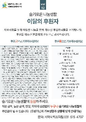 게시판 검색 구분 : 구분 전체보기 전체 동부희망케어센터 서부희망케어센터 남부희망케어센터 북부희망케어센터 검색 영역 : 전체 검색제목내용검색어 : 검색하기 동부희망케어센터 [우리동네 이웃살피미] 참여자를 모집합니다 ! 안녕하세요~동부희망케어센터입니다~2026년부터 사회복지공동모금회 지원을 받아 화도읍 내 다양한 이유로 고립과 위기 상황에 놓인 1인 청·중장년가구를 발견하고 지원하는 활동을 시작합니다~!!도움이 필요한 이웃을 위해 따뜻한 손길로 사랑을 나눠주실 ‘이웃살피미’를 모집하오니 많은 관심과 신청부탁드립니다!!궁금하신 사항 있으시다면 언제든지 동부희망케어센터로 연락주세요! ☏ 031-511-1062/ 010-7591-1062☞ 신청링크: https://form.naver.com/response/8TA-Ps5FyYh63MtjNhRqhA 2026-01-14 남부희망케어센터 [남부희망케어센터] 2025년 48호 복지관 소식지가 발간되었습니다! 안녕하세요! 남양주시 사회복지관 남부희망케어센터입니다.차가운 바람 속에서도 마음만은 따뜻해지는 겨울의 끝자락입니다.한 해의 마지막을 향해 달려온 시간 속에서,남부희망케어센터와 함께해주신 여러분의 소중한 발걸음을 담은2025년 제48호 뉴스레터(4분기)가 발간되었습니다.10월부터 12월까지 지역주민, 자원봉사자, 후원자 여러분과 함께한 연대와 나눔, 변화의 이야기들이 이번 호에 담겨 있습니다.겨울을 따뜻하게 채운 현장의 기록을 통해 한 해를 돌아보고 새로운 희망을 그려보는 시간이 되시길 바랍니다.활동 현장의 생생한 소식은 아래 링크를 통해 페이스북에서도 확인하실 수 있습니다.☞ 뉴스레터 보러가기, "dis": false, "ds": { "ti": "", "la": "ko", "cr": "", "su... 2025-12-31 동부희망케어센터 남양주시 사회복지관 동부희망케어센터 [이용자 고충처리 접수 안내] 안녕하세요, 남양주시 사회복지관 동부희망케어센터 [고충처리위원회]입니다. 우리 복지관에서는 복지관을 이용하시는 중 발생하는 이용자분들의 다양한 불편사항들을 청취하고 보다 신속하게 해결하고자 고충처리 위원회를 운영하고 있으며 이용자분들의 작은 소리에도 귀 기울이고 불편사항 해결에 최선을 다하겠습니다. ■ 진행절차 상담신청 ⇨ 접수 ⇨ 회의(고충처리위원회) ⇨ 조치 ⇨ 결과통보 고충 내용은 고충처리위원회 외 열람이 제한되며 신청자가 공개를 원하지 않을 경우 진행 과정은 모두 비공개로 처리됩니다. 그 외에는 접수, 조치사항, 조치결과를 7일 이내에 신청자에게 개별 연락하고 홈페이지에도 게시합니다. ■ 참여방법 1. 이용자 고충처리함(소리함) 가. 위치 : 복지관 1층 ... 2025-06-26 동부희망케어센터 2024년 ESG 복지경영 2024년 남양주시 사회복지관 동부희망케어센터는 ESG 복지경영을 실천합니다. 2024-06-25 남부희망케어센터 남부희망케어센터 시설 대관 안내 *대 상 : 지역주민 누구나*대관시간 : 평일 10:00~17:00 (주말 및 공휴일은 휴관)*대관공간 : 주민소통공간 '덕담' 및 사례회의실*대관범위 : 지역주민 간의 주민모임 및 동아리 진행 또는 센터와 추진하는 사업과 관련 (단, 정치성 및 종교행사, 영리행위 등의 목적의 경우 대관이 불가합니다.)*이용안내 : 유선문의(031-593-9023~4) ※ 활동 내용 및 기관 일정에 따라 대관이 불가할 수 있습니다. <주민소통공간 덕담> 사진 입니다. 2024-05-30 남부희망케어센터 [남부희망케어센터] 모두가 함께하는 지속가능한 복지 - 남부희망케어센터의 ESG 경영실천 남부희망케어센터는 사회복지 기관으로서의 책무를 바탕으로, 지속가능한 지역사회를 위한 ESG경영을 실천하고 있습니다.ESG는 환경(Environment), 사회(Social), 지배구조(Governance)의 책임 있는 운영을 뜻하며, 복지관 운영 전반에 이 가치를 통합하고자 노력하고 있습니다.E(Environment)주민과 함께하는 환경 실천, 사회복지적 접근으로지역 주민과 함께하는 환경 교육 및 캠페인 운영복지관 사업 속 환경친화적 요소 도입 (재사용, 절전, 녹색 공간 조성 등)취약계층이 참여할 수 있는 친환경 프로그램 기획환경을 통한 주민의 삶의 질 향상과 공동체적 실천 유도S(Social)다양한 이해관계자에 대한 사회적 책임 실천주민, 직원, 자원봉사자, 후원자, 이용자 등 이해관계자와의 상호 존중과... 2026-01-30 서부희망케어센터 [사업] 행복실은 가위손 봉사단과 함께하는 ‘함께 헤어’ 봉사활동 후기 및 2월 일정 안내 행복실은 가위손 봉사단과 함께하는 ‘함께 헤어’ 봉사활동 후기 및 2월 일정 안내지난 1월 21일과 28일, 서부희망케어센터에서 '행복실은 가위손' 봉사단의 새해 첫 이미용 서비스 "함께 헤어"가 진행되었습니다.함께 헤어란?미용실 이용이 어려운 주민들을 위해 전문가 원장님들로 구성된 '행복실은 가위손 봉사단'이 복지관을 찾아와 머리를 다듬어 드리고, 이웃들과 이야기를 나누며 따뜻한 정을 쌓는 활동입니다.추운 날씨에도 불구하고 50여 명의 주민분들이 참여해 주셨습니다. 정성 어린 손길로 머리를 단정히 하고, 이웃들과 웃으며 안부를 묻는 사이 어느새 센터 안은 훈훈한 온기로 가득 찼습니다.참여하신 한 주민분께서는 "전문적인 원장님 덕분에 외모도 깔끔하게 가꾸고, 이웃들과 이야기 나누며 기분 좋게 새해를 시작할 ... 2026-0