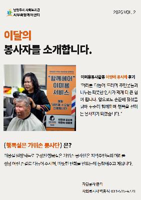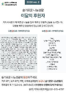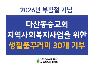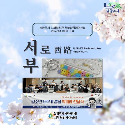 게시판 검색 구분 : 구분 전체보기 전체 동부희망케어센터 서부희망케어센터 남부희망케어센터 북부희망케어센터 검색 영역 : 전체 검색제목내용검색어 : 검색하기 동부희망케어센터 남양주시 사회복지관 동부희망케어센터 [이용자 고충처리 접수 안내] 안녕하세요, 남양주시 사회복지관 동부희망케어센터 [고충처리위원회]입니다. 우리 복지관에서는 복지관을 이용하시는 중 발생하는 이용자분들의 다양한 불편사항들을 청취하고 보다 신속하게 해결하고자 고충처리 위원회를 운영하고 있으며 이용자분들의 작은 소리에도 귀 기울이고 불편사항 해결에 최선을 다하겠습니다. ■ 진행절차 상담신청 ⇨ 접수 ⇨ 회의(고충처리위원회) ⇨ 조치 ⇨ 결과통보 고충 내용은 고충처리위원회 외 열람이 제한되며 신청자가 공개를 원하지 않을 경우 진행 과정은 모두 비공개로 처리됩니다. 그 외에는 접수, 조치사항, 조치결과를 7일 이내에 신청자에게 개별 연락하고 홈페이지에도 게시합니다. ■ 참여방법 1. 이용자 고충처리함(소리함) 가. 위치 : 복지관 1층 ... 2025-06-26 동부희망케어센터 2024년 ESG 복지경영 2024년 남양주시 사회복지관 동부희망케어센터는 ESG 복지경영을 실천합니다. 2024-06-25 남부희망케어센터 [남부희망케어센터] 돌봄코디네이터 양성 및 역량강화 교육 1회기 실시 [남부희망케어센터] 돌봄코디네이터 양성 및 역량강화 교육 1회기 실시 남부희망케어센터는 지역사회 돌봄 체계 강화를 위해「돌봄코디네이터 양성 및 역량강화 사업」을 추진하고 있으며,4월 7일(월) 교육 1회기를 시작으로 본격적인 교육 일정에 들어갔습니다. 본 사업은2026년 3월 30일부터 12월 31일까지 진행되며,기존 희망매니저와 신규 돌봄코디네이터를 포함한 총 12명을 대상으로지역 기반의 돌봄사례관리 전문인력 양성을 목표로 하고 있습니다. 교육은4월 7일(수)부터 4월 30일(목)까지 매주 화·목,총 7~8회기로 운영되며,JM통합돌봄연구소 김정민 소장과 전해진 선임연구원이 강사로 참여합니다. 1회기 교육에는 총 9명이 참석했으며,돌봄통합법 및 관련 정책 이해를 중심으로돌봄코디네... 2026-04-07 남부희망케어센터 [남부희망케어센터] 늘솜샌드, 샌드위치 세트 100개 후원으로 따뜻한 나눔 실천 남부희망케어센터는 4월 7일,늘솜샌드로부터 지역 내 이웃들을 위한샌드위치 세트 100개를 후원받았습니다. 이번 후원은돌봄이 필요한 주민들과 센터를 이용하는 분들에게간편하면서도 든든한 한 끼가 될 수 있도록 마련되었으며,전달된 샌드위치는 현장에서 따뜻한 마음과 함께 나눔으로 이어졌습니다. 늘솜샌드는지역 이웃을 향한 관심과 나눔을 통해의미 있는 실천을 이어가고 있으며,이번 후원 역시 지역사회에 따뜻한 온기를 전해주었습니다. 남부희망케어센터는전달받은 샌드위치 세트를필요한 분들께 정성껏 배분하며나눔의 마음이 잘 전해질 수 있도록 하겠습니다. 지역사회를 향한 따뜻한 나눔을 실천해 주신, "dis": false, "ds": { "ti": "", "la": "ko", "cr": ""... 2026-04-07 서부희망케어센터 [2026년 1분기 소식] 서부희망케어센터 소식지 〈서부·서로(西路)〉 발간 소식지 〈서부·서로(西路)〉가 2026년의 1분기 소식을 안고 찾아왔습니다.이웃과 함께여서 더 빛났던 지난 계절의 기록, 지금 바로 확인해 보세요! ▼▼▼ 아래 이미지 클릭하여 더 다양한 소식 확인하기 ▼▼▼https://pf.kakao.com/_Tvdxmxj/112972732 2026-04-07 북부희망케어센터 [북부희망케어센터] 별내동안교회, 북부희망케어센터에 부활절 맞이 기쁨나눔상자 300박스 전달 안녕하세요 여러분~ 오늘의 남양주시사회복지관 북부희망케어센터(센터장 전정수)의 소식을 전해드립니다.금일 별내동안교회(담임목사 나광현)가 지역사회 취약계층을 위한 부활절 '기쁨나눔상자' 300박스(780만 원 상당)를 북부희망케어센터에 전달해주셨습니다.이번 나눔은 3월 8일부터 4월 5일까지 일정 기간 동안 교회 성도들의 자발적인 참여로 마련되었으며,햇반, 라면, 커피, 참치, 리챔 등 일상생활에 유용한 식품으로 구성되었습니다.'기쁨나눔상자'는 이웃사랑 실천을 위해 개인, 가족, 소그룹 단위로 성도들이 참여하는 나눔 캠페인으로, 전달된 물품은 지역 내 저소득 가정과 돌봄이 필요한 이웃들에게 순차적으로 지원될 예정입니다.별내동안교회는 지난 2017년부터 북부희망케어센터와 함께 쌀, 기쁨나눔상자 등 식품 지원을 ... 2026-04-07 북부희망케어센터 [북부희망케어센터] 나눔기업 소개⑫ 안녕하세요 여러분~ 오늘은 북부희망케어센터(센터장 전정수)의 열 두 번째 나눔기업을 소개해드리려고 합니다!♥ 나눔기업이란?→ 후원금 또는 후원물품을 매월 2만원 이상(3개월 이상 유지) 꾸준히 나눔을 실천해주신 기업입니다.♥ 이번에 소개해드릴 열 두 번째 나눔기업은 별내3로 334 소재 1번지통닭입니다.→ 1번지통닭은 2025년 8월부터 매월 별내에 거주하는 취약계층 아동‧청소년 가정에 치킨을 지원해주고 계십니다.이처럼 지역에 있는 여러 기업, 가게들의 따뜻한 관심과 꾸준한 나눔 덕분에 이웃들이 더 살기 좋은 지역으로 거듭날 수 있었습니다.북부희망케어센터는 나눔 문화를 확산하고 따뜻한 나눔을