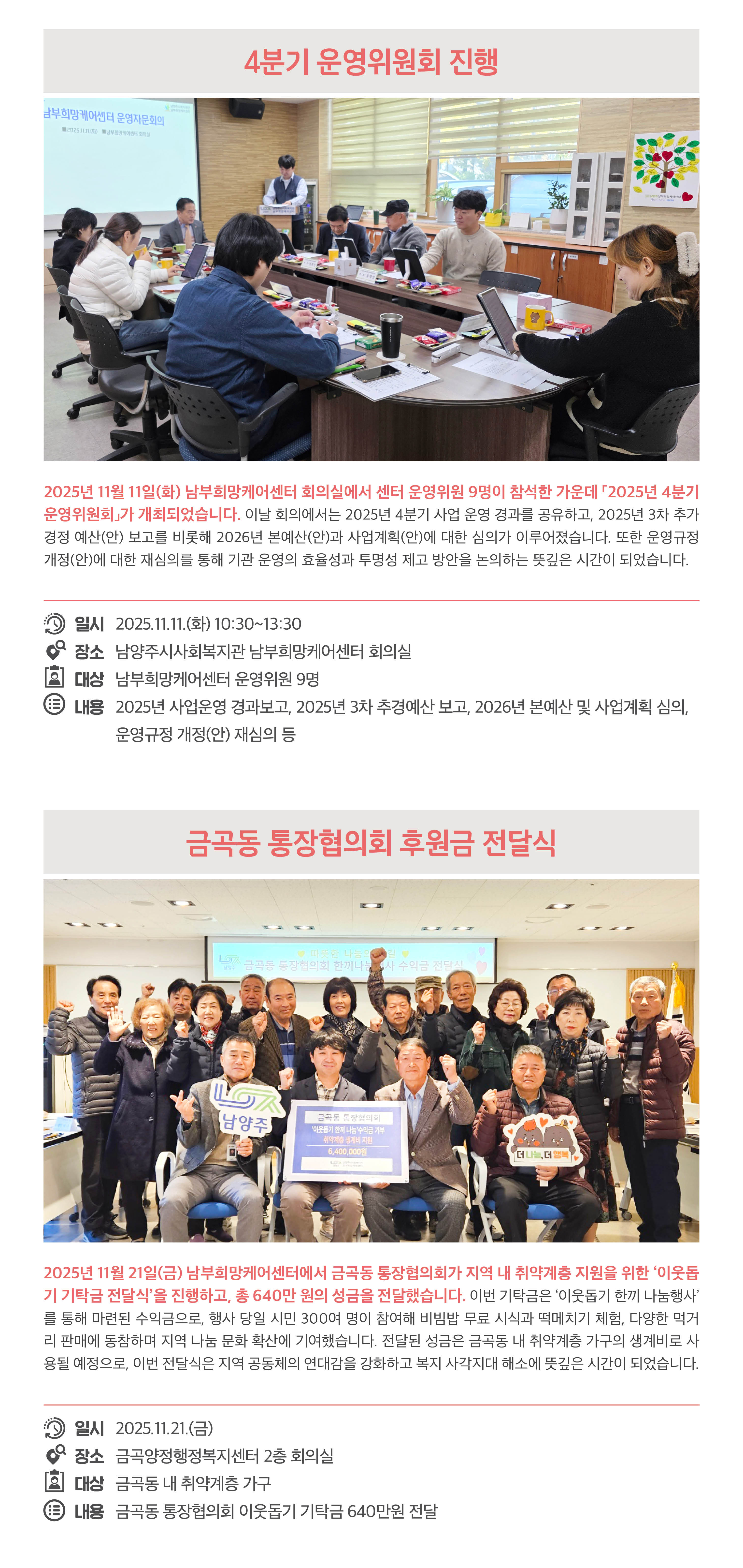 10월부터 12월까지 지역주민, 자원봉사자, 후원자 여러분과 함께한 연대와 나눔,
