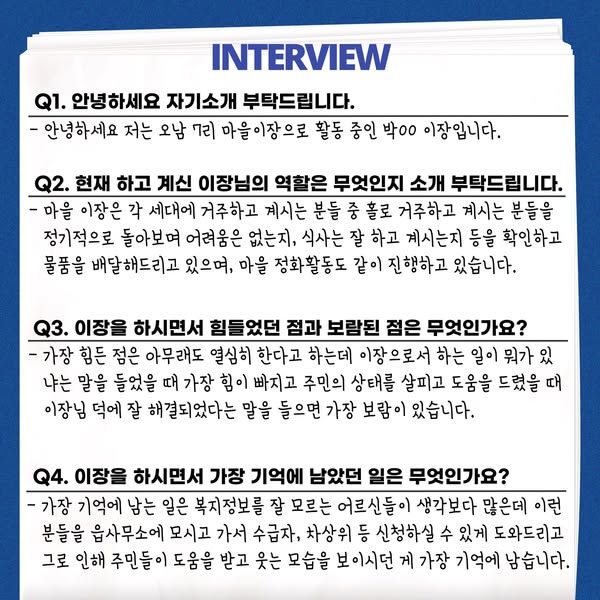 Q4. 이장을 하시면서 가장 기억에 남았던 일은 무엇인가요?