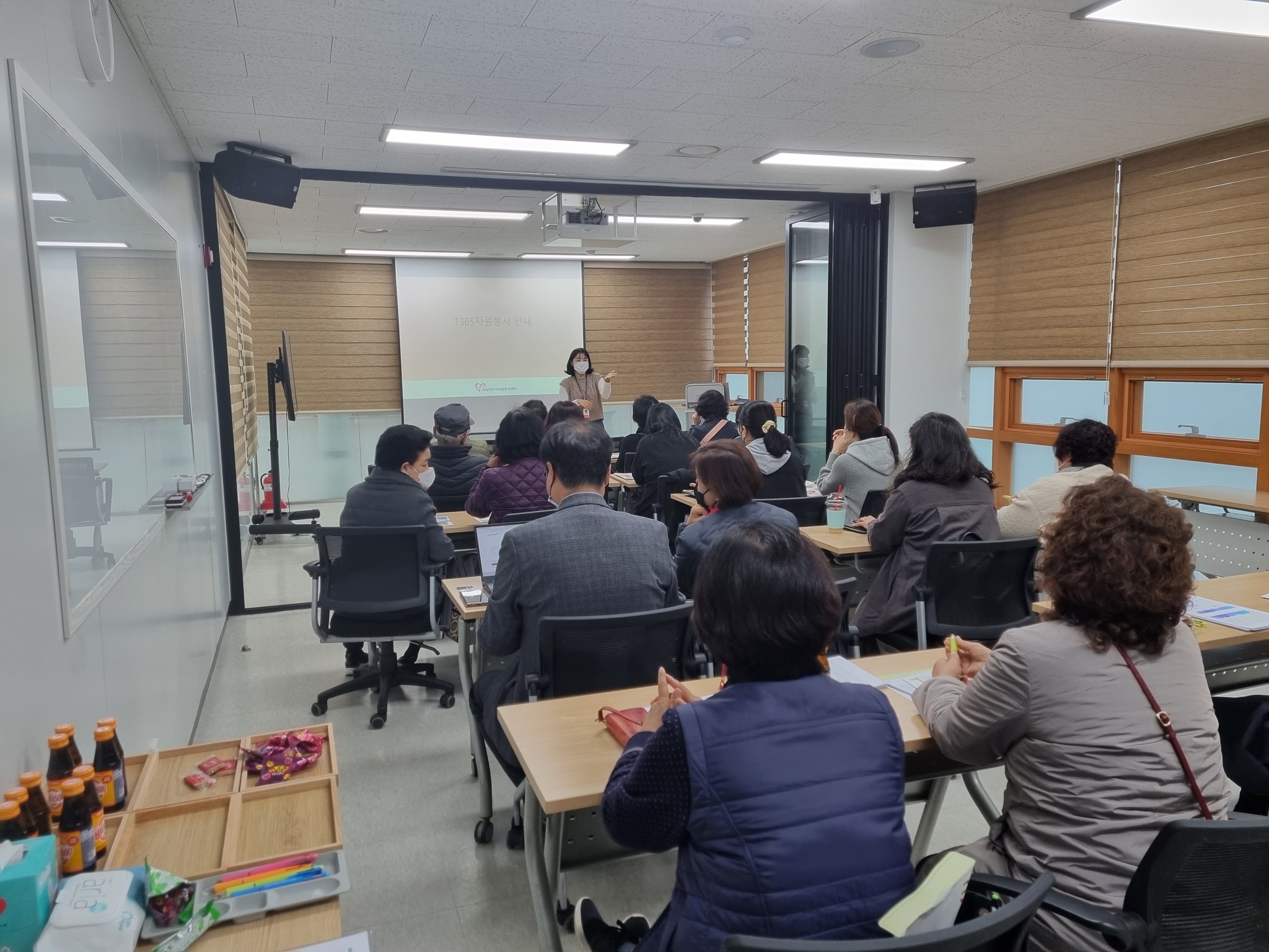 안녕하세요 남양주시사회복지관 북부희망케어센터(센터장 전정수)입니다. 지난 11월 3일 (수) 남양주시사회복지관 북부희망케어센터(센터장 전정수)에서는 자원봉사자분들을 대상으로 보수교육을 진행했는데요 이날 진행된 보수교육은 자원봉사자로서의 전문성을 함양하고 보장받아야 할 권리와 올바른 봉사 가치를 습득하고자 추진되었으며, 자원봉사자 기본 교육과, 인권교육, 개인정보보호 교육을 주제로 진행되었습니다. 특히 남양주시자원봉사센터 북부분소의 협력과 연계를 통해 교육을 진행하여 질 높은 교육시간이 되었습니다. 늘 지역사회를 위해 복지 나눔에 힘써주시는 자원봉사자 선생님들에게 다시 한번 감사드리며 이날 교육을 위해 바쁜 시간에도 한달음에 와주신 남양주시자원봉사센터 북부분소 황은정 대리님께도 감사 인사드립니다.