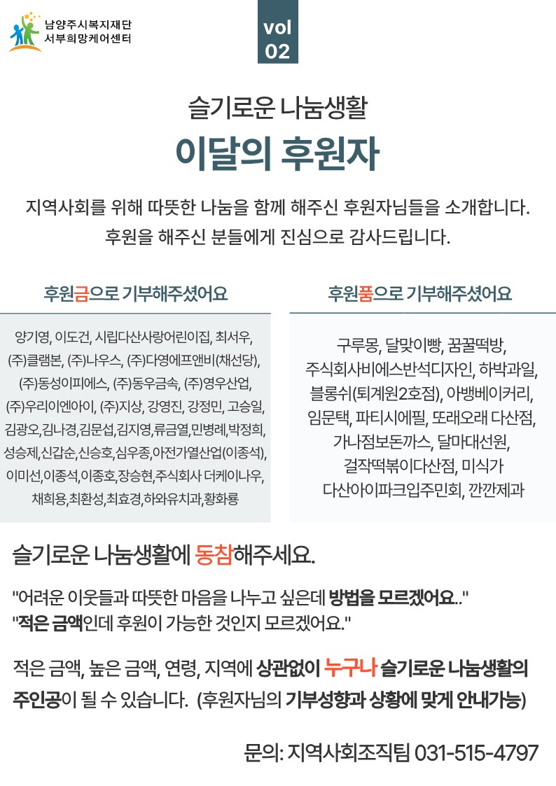 서부희망케어센터 서부희망케어센터 / 슬기로운 나눔생활, 이달의 후원자_2월