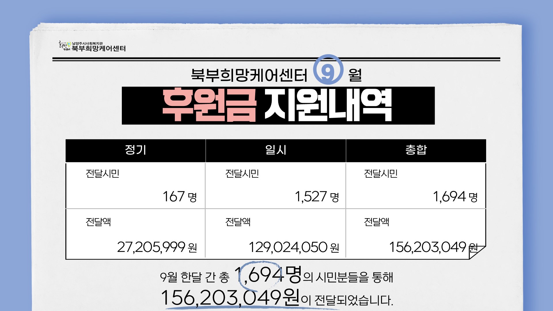 북부희망케어센터 북부희망케어센터, 9월 나눔현황 보고