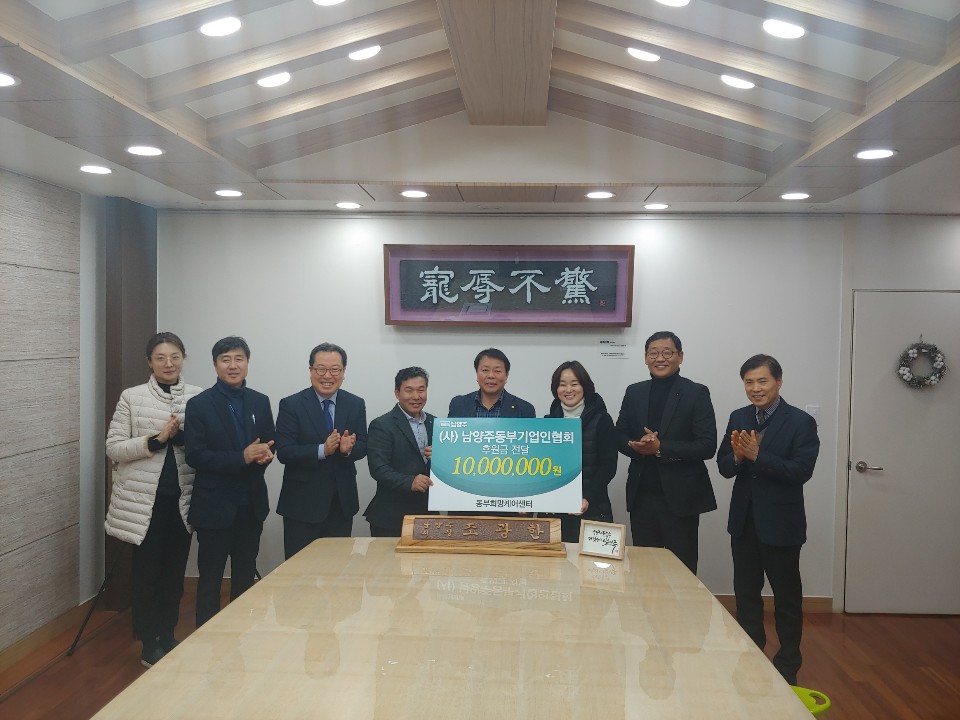 남양주시 사단법인 동부중소기업인협회는 최근 지역 내 소외된 이웃을 위해 희망케어센터에 이웃돕기 후원금 1천만원을 기탁했다. 올해로 후원활동을 시작한 지 6년째가 되는 ㈔남양주동부중소기업인협회는 지역 내 중소기업의 문제해결 및 육성에 기여할 뿐 아니라 적극적으로 후원금을 조성해 지역 내 취약계층을 위한 지속적인 나눔활동에 앞장서 지역사회의 귀감이 되고 있다.