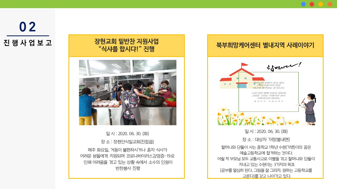 북부희망케어센터는 지난 2020년 6월 지역사회와 다양한 사업을 진행하였습니다. 항상 북부희망케어센터와 지역사회를 위해 나눔을 해주시는 모든 분께 감사드립니다. 자세한 내용은 이미지를 참고해주세요.