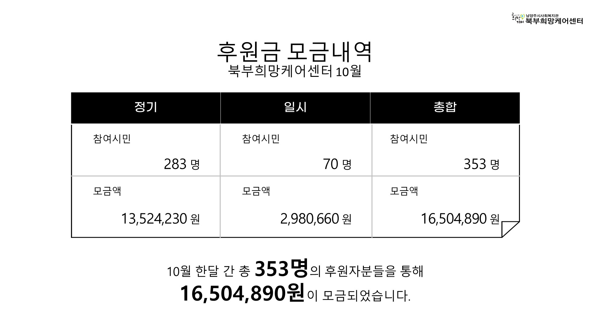 북부희망케어센터 북부희망케어센터, 10월 나눔현황 보고