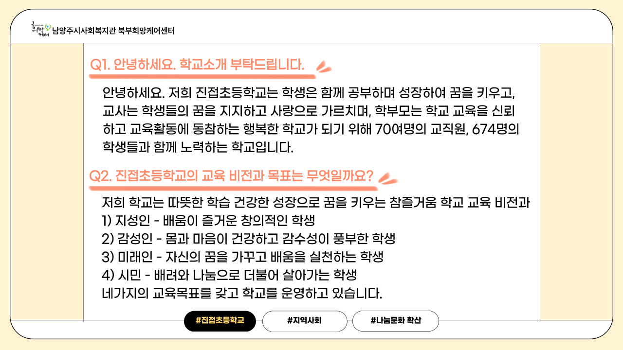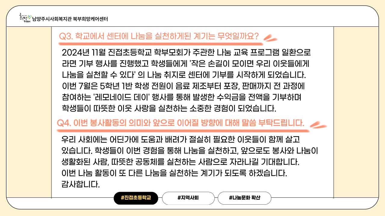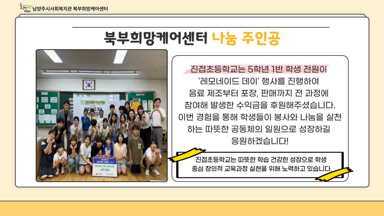 북부희망케어센터 북부희망케어센터 나눔 주인공 진접초등학교를 소개합니다!