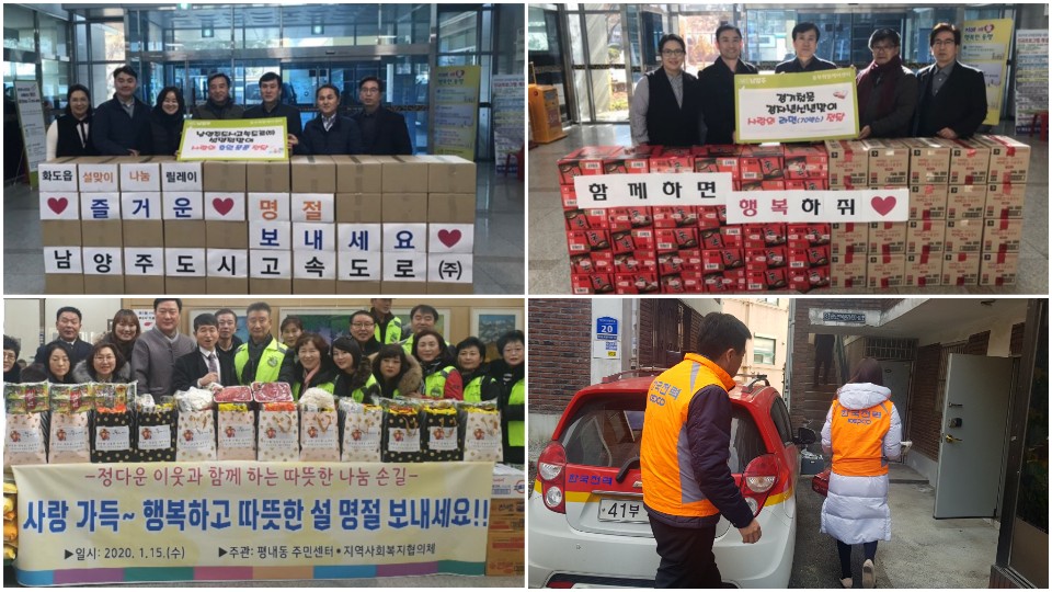 2020년 1월 동부희망케어센터는 명절을 맞이하여 많은 나눔활동이 있었다. 맷돌36 숯불갈비의 식용유(set), 경기철물점의 사랑의 라면(70ox), 화도사랑, 수동로타리클럽, 한국전력남양주지사, 남양주도시고속도로의 선물꾸럼이, 화도농협의 이웃사랑 떡국떡, 김삿갓 밥집의 식용유(set) 등 지역사회의 다양한 후원과 지역사회보장협의체를 통한 나눔 활동이 있었다. 전달받은 후원물품은 지역 내 독거 어르신 및 취약계층에게 전달되었다.