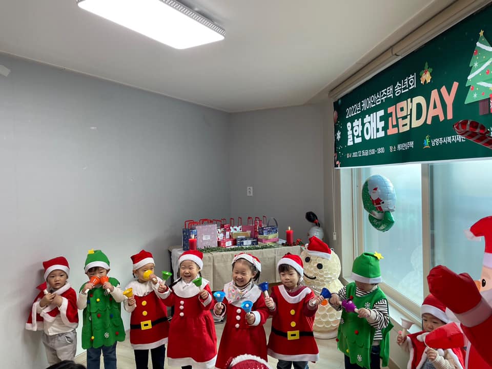 이번 송년회는 2022년 한 해 동안 케어안심주택 어르신들에게 좋은 추억을 많이 쌓아주시고 지역주민, 봉사자로서 한 발 앞장서 봉사를 실천해주시는 봉사자분들께 감사인사를 전하고 파티도 하고 선물도 주고 받으며 즐거운 시간을 통해 다 함께 연말을 따뜻하게 마무리를 하는 시간을 가졌습니다.