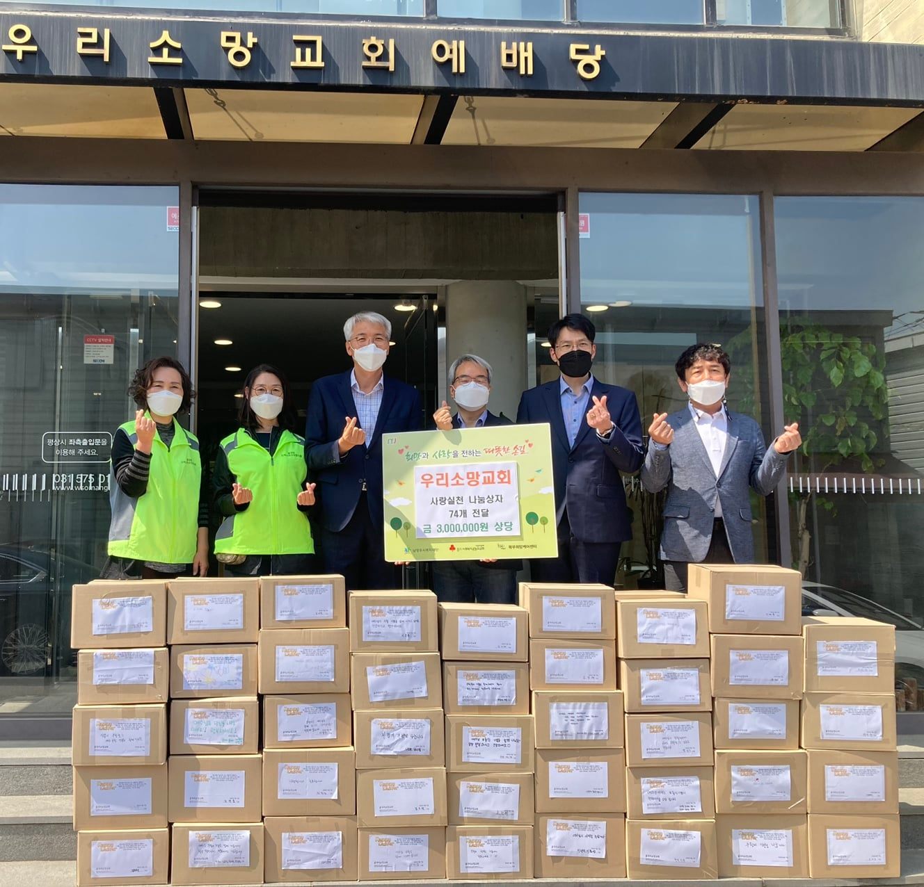안녕하세요! 지난 4월 20일 따뜻한 나눔의 소식이 있어 전해드립니다! 남양주시 별내동에 위치한 우리소망교회에서는 부활절을 맞아 지역소외계층을 위한 나눔상자 73박스(300만원 상당)를 북부희망케어센터에 전달해 주셨습니다! 이날 전달해주신 '나눔상자'에는 라면, 햇반, 카레 등 식료품으로 구성되었는데요, 우리소망교회 성도들이 직접 나눔상자를 제작하여 나눔의 의미가 더 커졌습니다! 이날 전달된 나눔상자는 별내동 지역의 소외계층 가구에게 전달될 예정입니다! 매년 부활절을 맞이하여 이웃들에 따뜻한 나눔을 실천해주시는 우리소망교회에 감사드립니다.