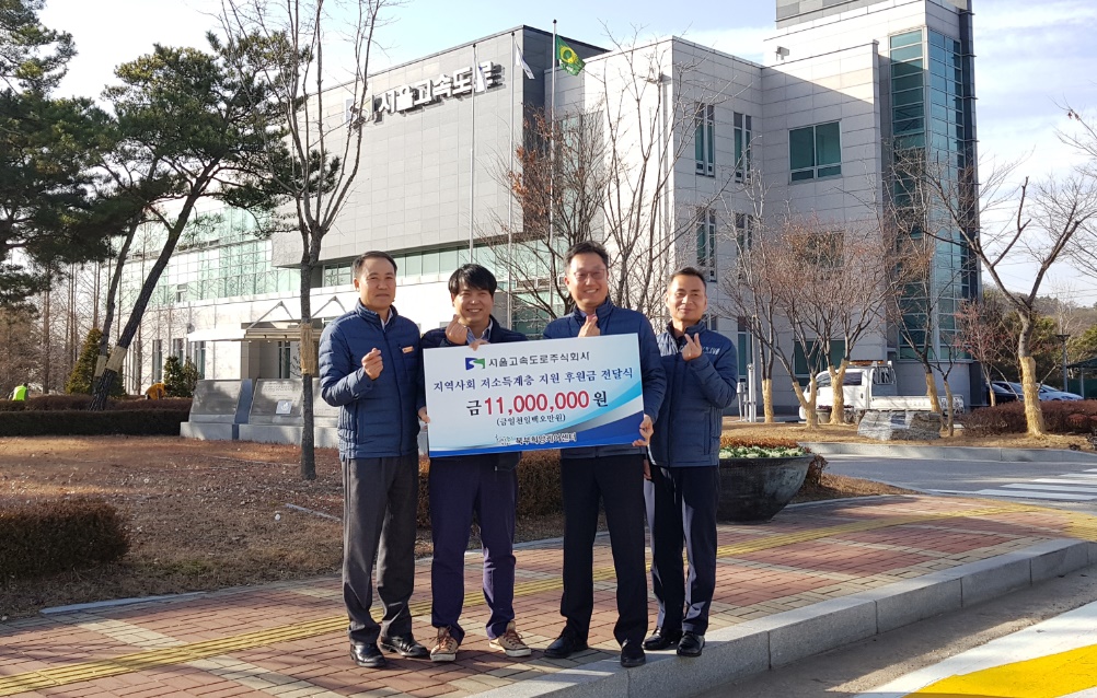 서울고속도로주식회사(사장 강태구)는 11월 28일 양주톨게이트 서울고속도로 본사에서 동절기 취약계층 지원을 위한 후원금 1천1백만원을 남양주시 북부희망케어센터(센터장 류시혁)에 전달했다. 강태구 사장은 “어떤 좋은 일을 하는데 있어 한 번에 크게 하는 것보다 꾸준히 실천하는 노력이 중요하다고 생각한다”며 “지역사회에 긍정의 힘을 나눠주고 함께 성장하는 기업으로 앞으로도 사회공헌활동을 지속적으로 추진할 것” 이라는 뜻을 밝혔다. 이날 전달된 후원금은 동절기에 일자리가 감소되고 난방비 부담으로 생활고에 시달리는 에너지 빈곤층들을 위한 따뜻한 겨울나기 사업에 사용될 예정이다. 한편 서울고속도로주식회사는 지난 2012년부터 현재까지 지역사회에 어려운 이웃을 위하여 직원들이 자발적으로 급여에서 일정금액을 매월 기부하여 총 6천 4백만원 상당의 후원금을 기부하는 등 꾸준히 사회공헌 활동을 펼치고 있어 귀감이 되고 있다.