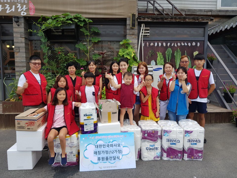 먼저 여름 더위에 지쳤을 저소득 어르신 26명을 모시고 영양을 보충할 수 있는 맛있는 보양음식을 제공하고 더불어 대한민국 따사모와 결연되어 있는 저소득 가정 12가정을 방문하여 여름철 냉방용품 및 생활용품, 아동용품 등 맞춤형 후원물품을 전달하였다.