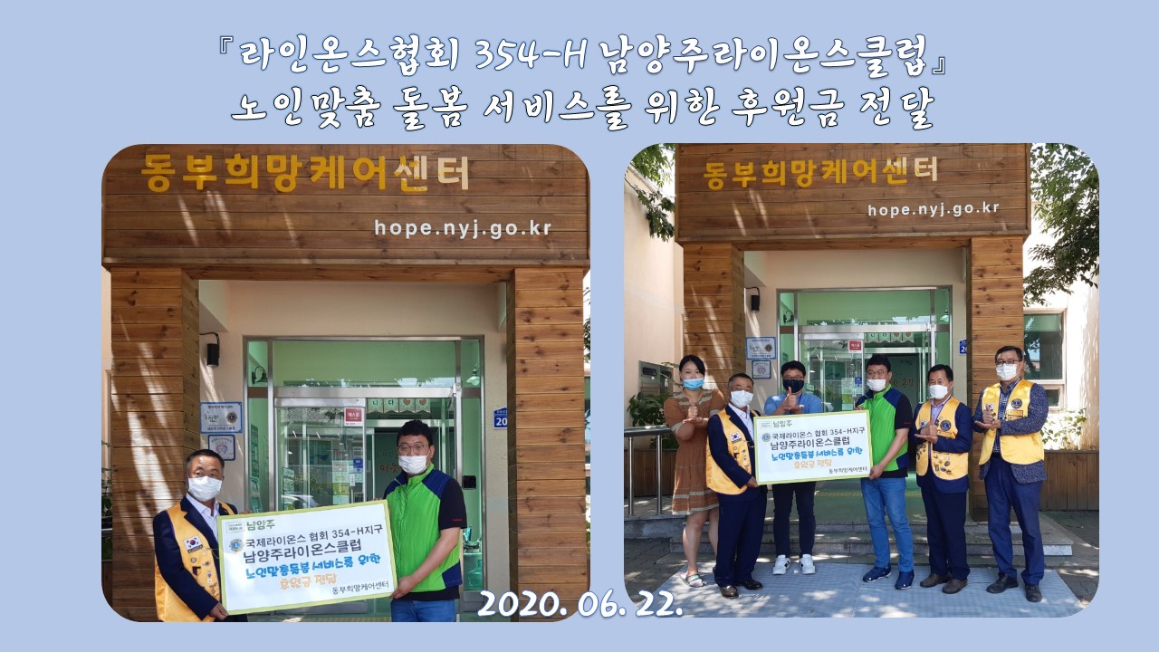 동부희망케어센터 동부희망케어센터, 남양주라이온스클럽 후원금을 후원 등록일자 2020-06-26 조회 179 내용 6월 22일 남양주라이온스클럽은 동부희망케어센터에 후원해주셨습니다. 후원금은 노인맞춤돌봄서비스를 위해 사용할 예정입니다. 첨부파일 프레젠테이션622.jpg [ Size : 226.61KB, Down : 75 ] 미리보기 다운로드 목록보기