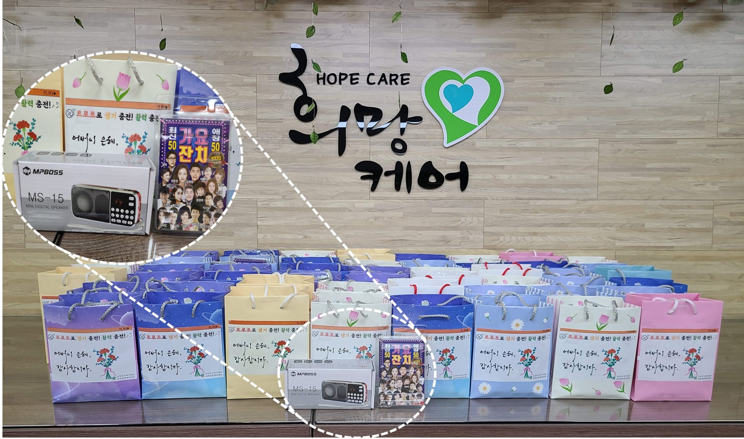남부희망케어센터 김기수 센터장은“매년 어버이날에는 의례적으로 카네이션을 지원하였는데, 이번엔 코로나19로 인해 지쳐가는 취약계층을 위해 이색적 사업을 기획했다. 어르신들이 트로트를 통해 힘을 얻기를 바란다”고 말했고, 지원받은 김○○어르신은“집에서 너무 심심하고 답답했는데 트로트를 틀어놓고 있으니 옆에 누군가와 함께 있는 것 같고 흥이 난다”며 소감을 전해주셨습니다.