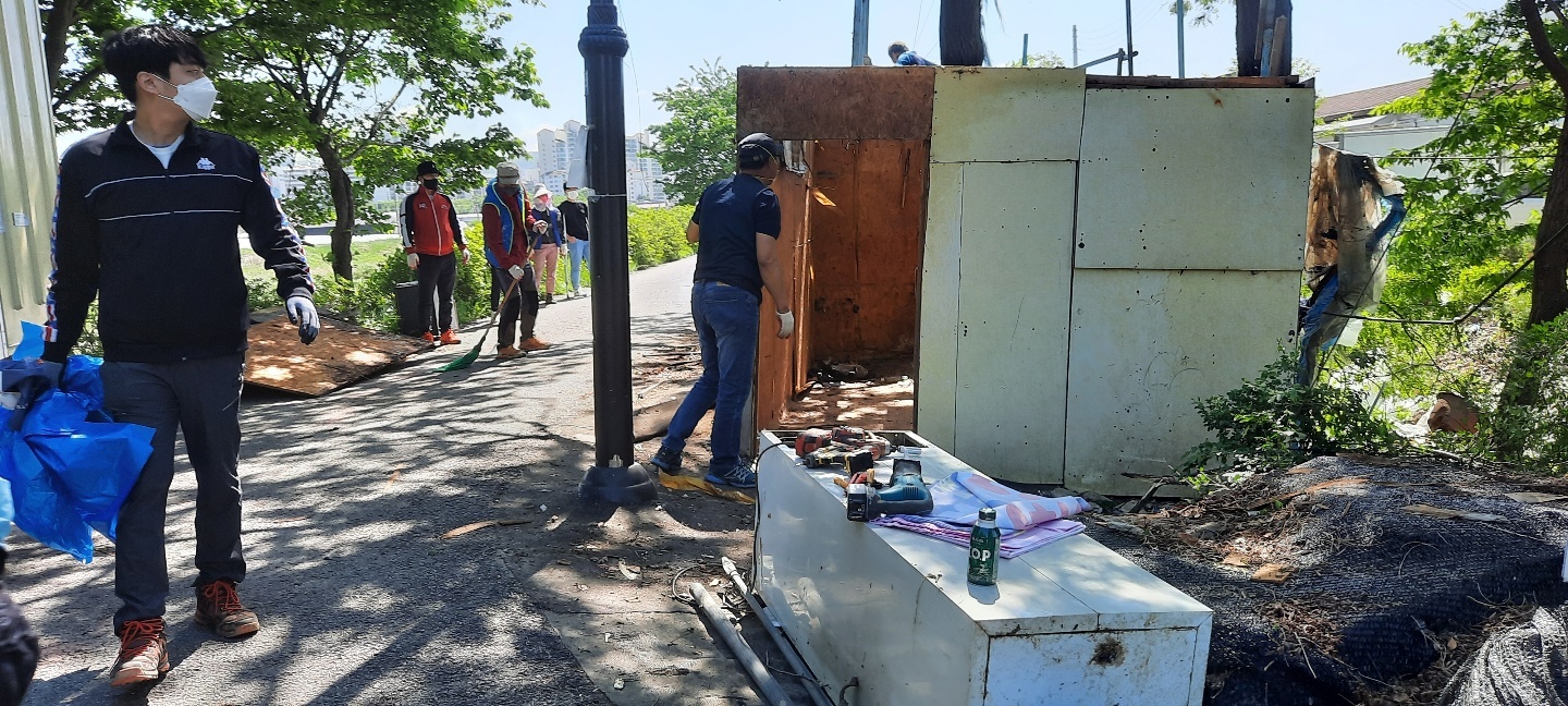 황사가 지나간 2021년 5월 9일. 화창한 일요일에 비정형 주거지 철거가 진행되었습니다. 철거에는 '청개구리와 반딧불'봉사단(회장 박준호)이 도와주셨습니다. 철거가 막막하던 차에 흔쾌히 철거를 도와주신다고 하셔서 얼마나 든든했는지 모릅니다. 아침부터 진행된 철거는 전문가분들의 솜씨로 생각보다 빠르게 진행되었습니다. 이곳에 사시던 어르시는 통합돌봄대상으로 선정되셔서 서부희망케어센터의 케어안심주택으로 주거를 옮기실 계획입니다. 주방시설도 없고 화장실도 없는 곳에서 불편하게 생활하셨을텐데 이제는 좀 더 편하게 지내실 수 있을것 같습니다. 철거를 도와주신 '청개구리와 반딧불'봉사단의 단원분들께 깊은 감사드립니다.