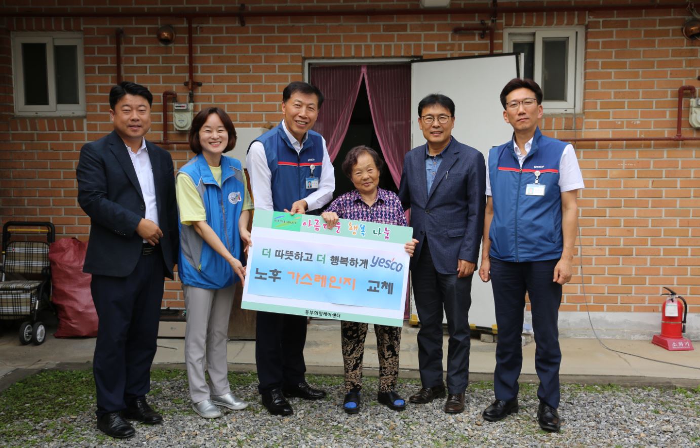 또한 지난 18일에는 남양주시 화도읍 소재 원룸에 홀로 거주 중인 A씨(78세, 여)가정에 (주)예스코 정창시 에너지사업본부장, 고영만 고객서비스부문장과 김승수 남양주시 복지문화국장 등이 직접 방문하여 노후 된 가스렌지 교체와 함께 안부인사를 전하고 추석 선물꾸러미도 전달하였다.