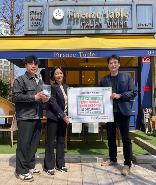 피렌체테이블은 지난 3월 31일 취약계층을 돕기 위한 피렌체 마켓을 개최하였으며 프리마켓을 통해 발생된 수익금 512,000원을 전달해주셨습니다.