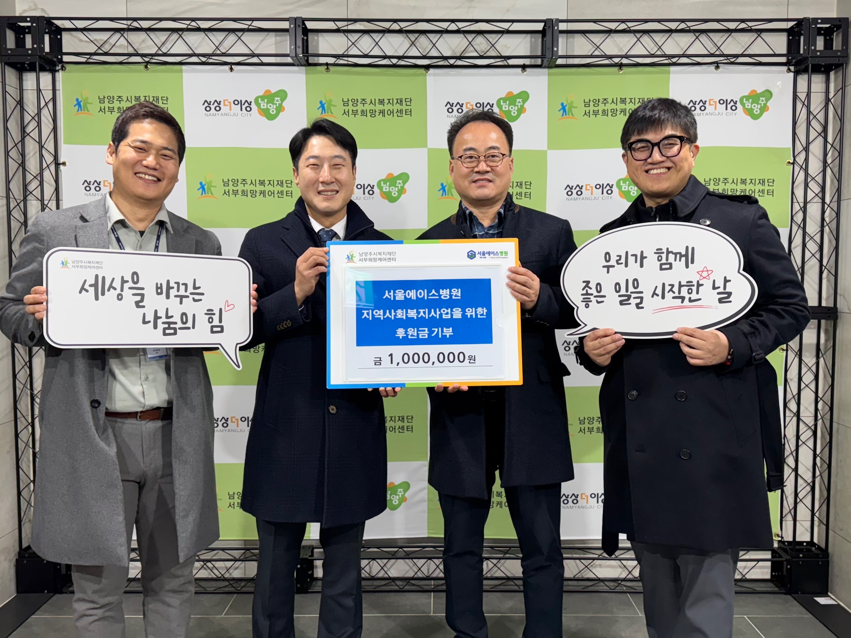 지역사회 복지사업 지원을 위해 후원금 100만 원을 서부희망케어센터에 전달했습니다.
