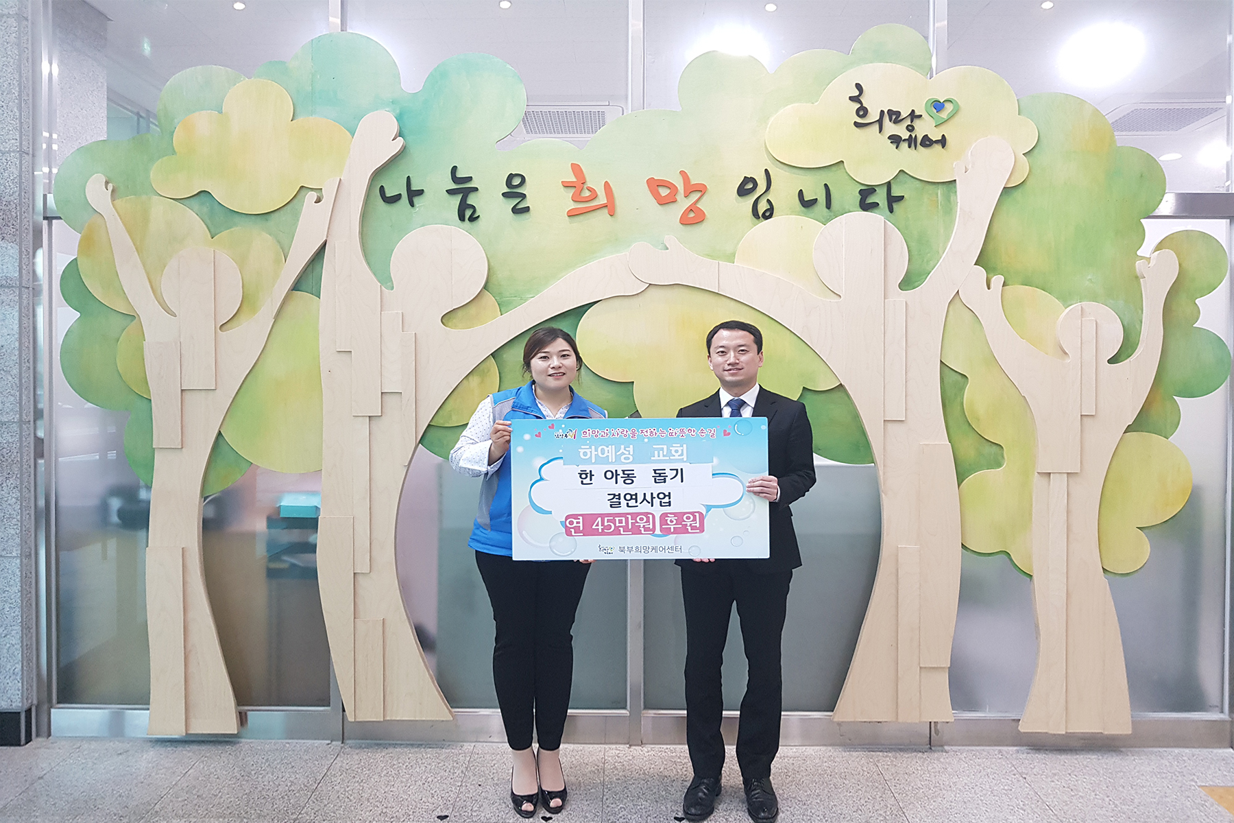 북부희망케어센터 하예성교회,‘십시일반’후원금 별내희망케어센터에 전달