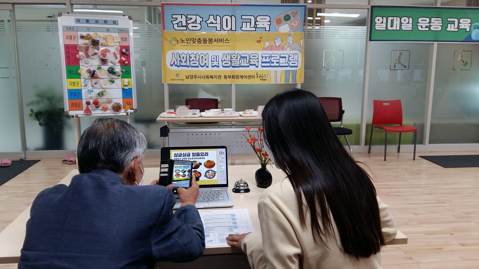 저희 동부희망케어센터에서 운영되고 있는 노인맞춤돌봄사업의 일환으로 저희 센터에서는 스스로 식사를 챙기는 일이 익숙하지 않아 식생활에 곤란을 겪는 남자 이용자 20명을 대상으로 생활교육사업 중 신체건강분야의 영양교육 “싱글싱글 일품요리”를 진행하였습니다. 현재 그 첫 번째 활동으로 영양성분 알기 이론교육이 남양주시고혈압당뇨병등록교육센터에서 진행되고 있으며, 전문기관에서 진행되는 만큼 혈압, 당뇨 체크는 물론 평소 식단과 운동습관에 대해서도 개별적으로 점검을 해주시니 어르신들도 질문과 답변을 이어가며 집중해 주시는 모습을 보여 주셨습니다. 앞으로 이론교육은 이번주 목요일, 금요일 이틀에 걸쳐 더 진행될 예정이며, 이론교육 이후에는 밀키트를 제공하여 이용자가 직접 댁내에서 조리를 하는 활동이 5회기에 걸쳐 진행될 예정입니다. 준비되지 않은 홀로서기로 식사관리에 어려움을 겪는 남자 어르신들이 조리에 자신감을 가지고 균형잡힌 식생활을 영위해 가실 수 있기를 기대합니다.