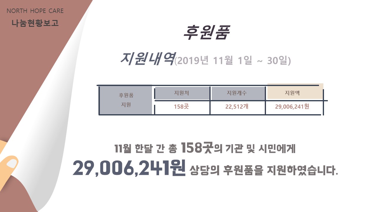 북부희망케어센터 북부희망케어센터, 11월 나눔현황 보고