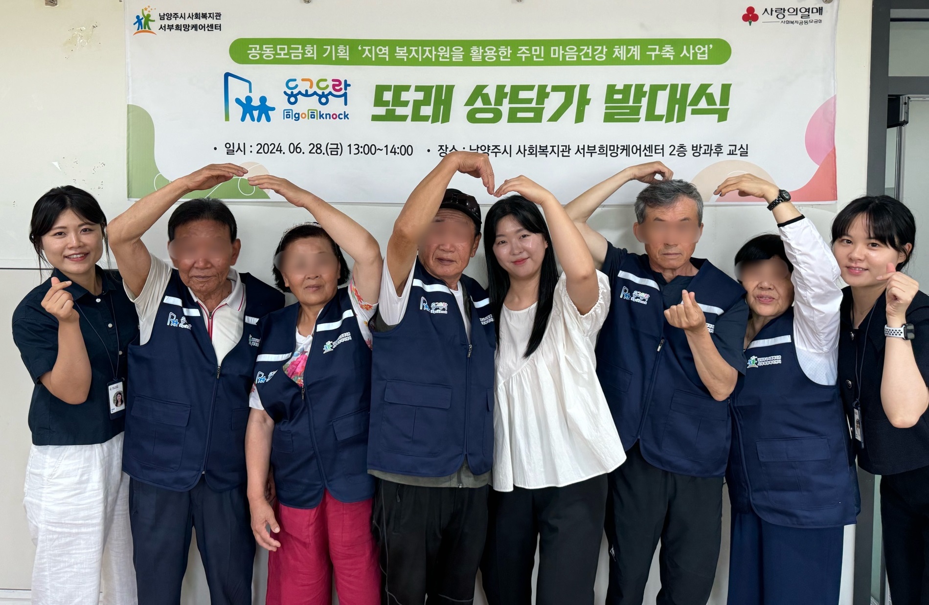 사회복지공동모금회 마음건강 기획사업으로 진행되고있는 동고동락(同go同knock)‘또래 상담가’활동은 오는 7월부터 이웃의 마음회복을 위한 다양한 활동(정신건강 프로그램 운영 조력, 이웃 상담, 복지정보 안내 등)이 진행될 예정입니다. 많은 응원과 관심 부탁드립니다~!!