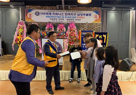 9월 28일(토) 북부희망케어센터에서는 국제키와니스 남양주클럽 이취임식 행사에 참석하였다. 당일 이취임식에서는 진접권역 저소득층 아이들 5명에게 총 150만원의 후원금 전달식을 진행하였다. 심리치료가 필요하지만 경제적 부담으로 인해 치료를 받기 어려운 아이에게 심리치료비를 지원하고, 교육기회가 부족한 아이들에게 교육비를 지원할 수 있게 되었다. 후원금을 받은 박진수(가명)아동은 소근육 발달 지연으로 또래보다 왜소한 체격으로 인해 자신감이 없는 아이였다. 그러나 태권도 학원을 다니면서 운동 발달과 자신감이 많이 향상되었으며 점점 밝은 모습을 보여주고 있다. 또한 후원금을 태권도 학원비에 사용할 예정이라고 한다.