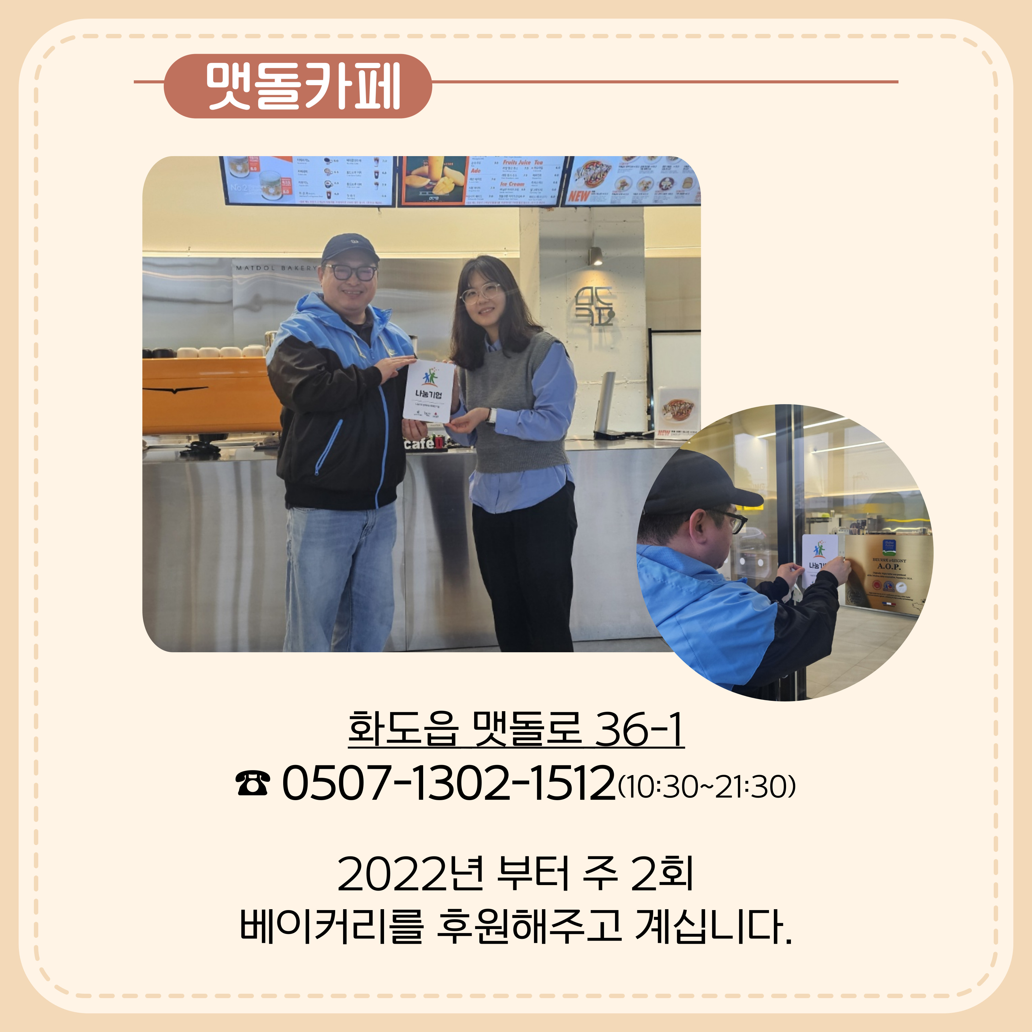 지난 9일에는, 2022년부터 지역사회에 나눔을 실천해주고 계신 '맷돌카페'에 나눔기업 현판을 전달했습니다.