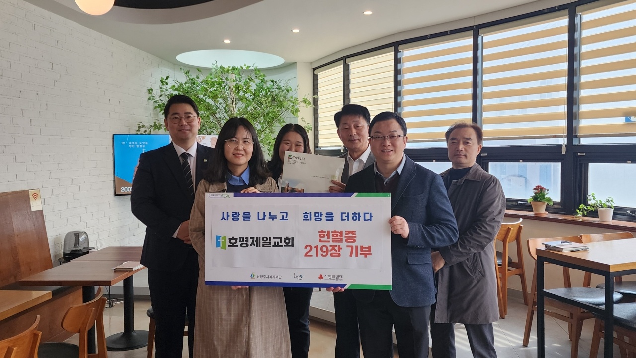 호평제일교회가 창립 40주년을 맞아 헌혈버스를 불러 생명 나눔을 실천하고, 그간 모아온 헌혈증 219장을 저희 동부희망케어센터에 기부해주셨습니다.