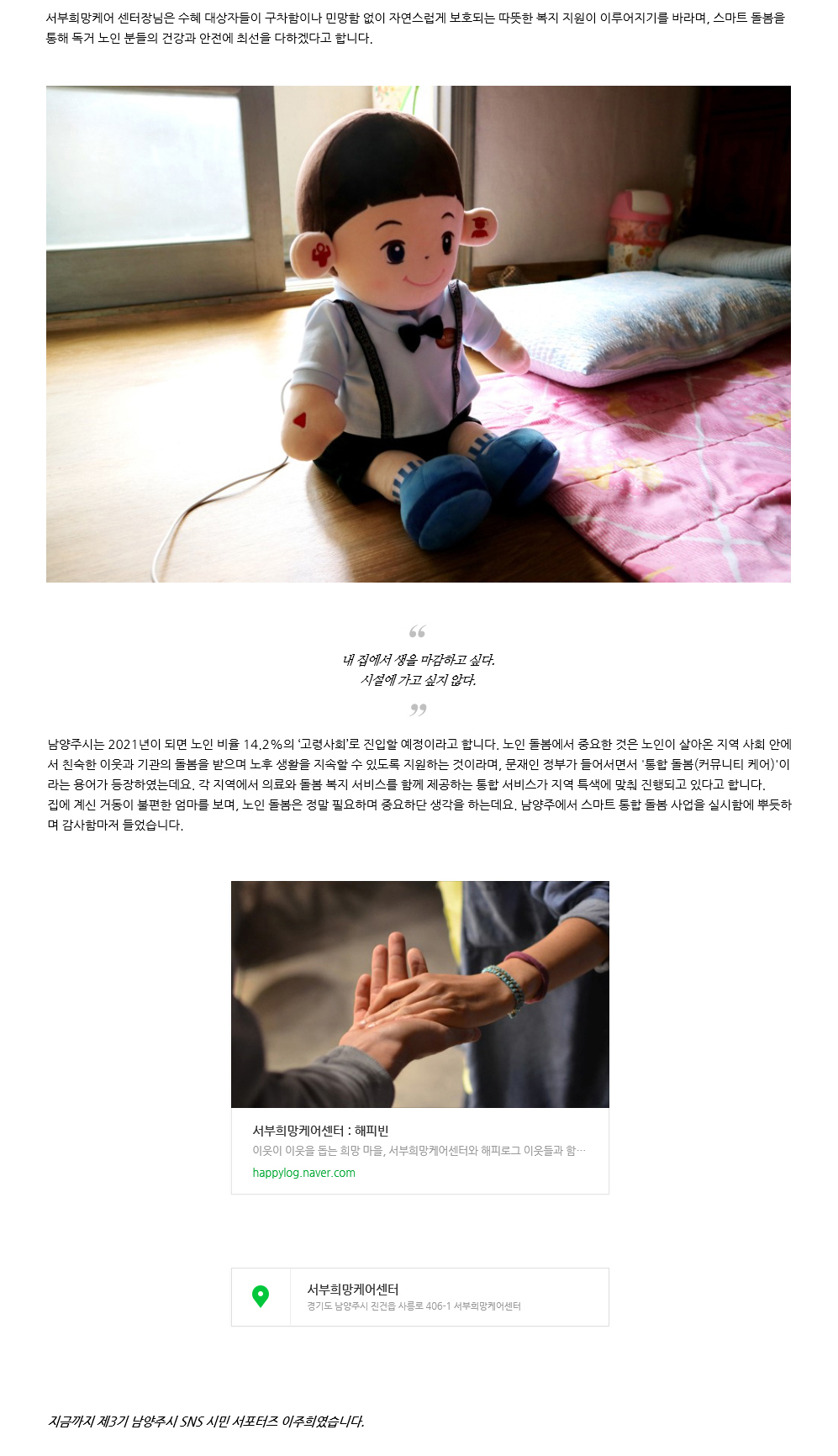 서부희망케어센터 서부희망케어센터, 스마트통합돌봄 우리 집 손주 엔젤 아이(i)-효돌이가 할머니 할아버지와 함께합니다.