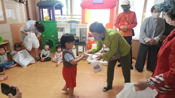 남양주시 어르신 공동체 ‘우.하.청’(우리도 하면 된다, 청춘은 칠십부터) 어르신들이 어린이날을 맞아 손수 만든 케이크와 정성 가득한 선물, 손편지를 들고 신안해오름어린이집과 강산반도어린이집 아이들을 찾아갔어요!