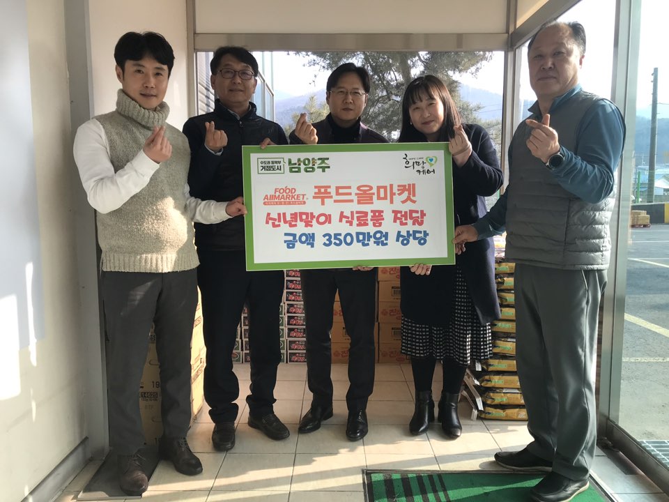 (주)푸드올마켓(남양주시 화도읍 차산리 대표 임홍택)”은 4일 350만원상당의 식료품(쌀, 라면, 고추장, 간장 등)을 동부희망케어센터(센터장 최정선)에 전달했다.