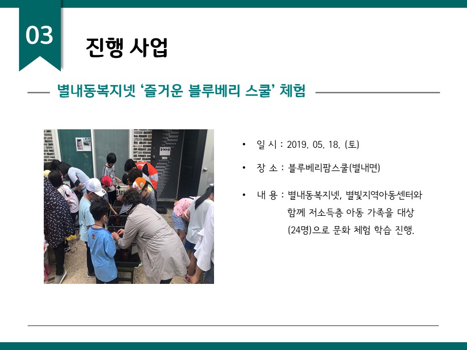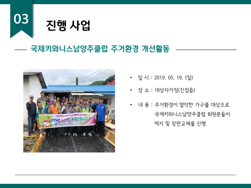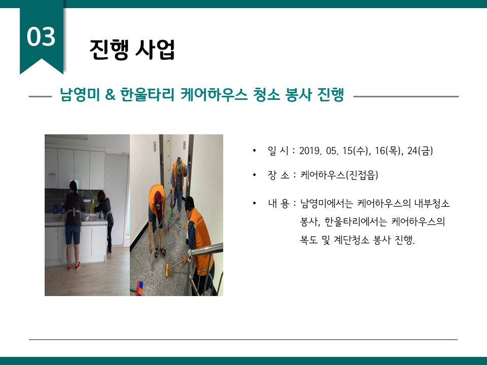 북부희망케어센터는 지난 2019년 5월 지역사회와 다양한 사업을 진행하였습니다. 항상 북부희망케어센터와 지역사회를 위해 나눔을 해주시는 모든 분께 감사드립니다. 자세한 내용은 이미지를 참고해주세요.